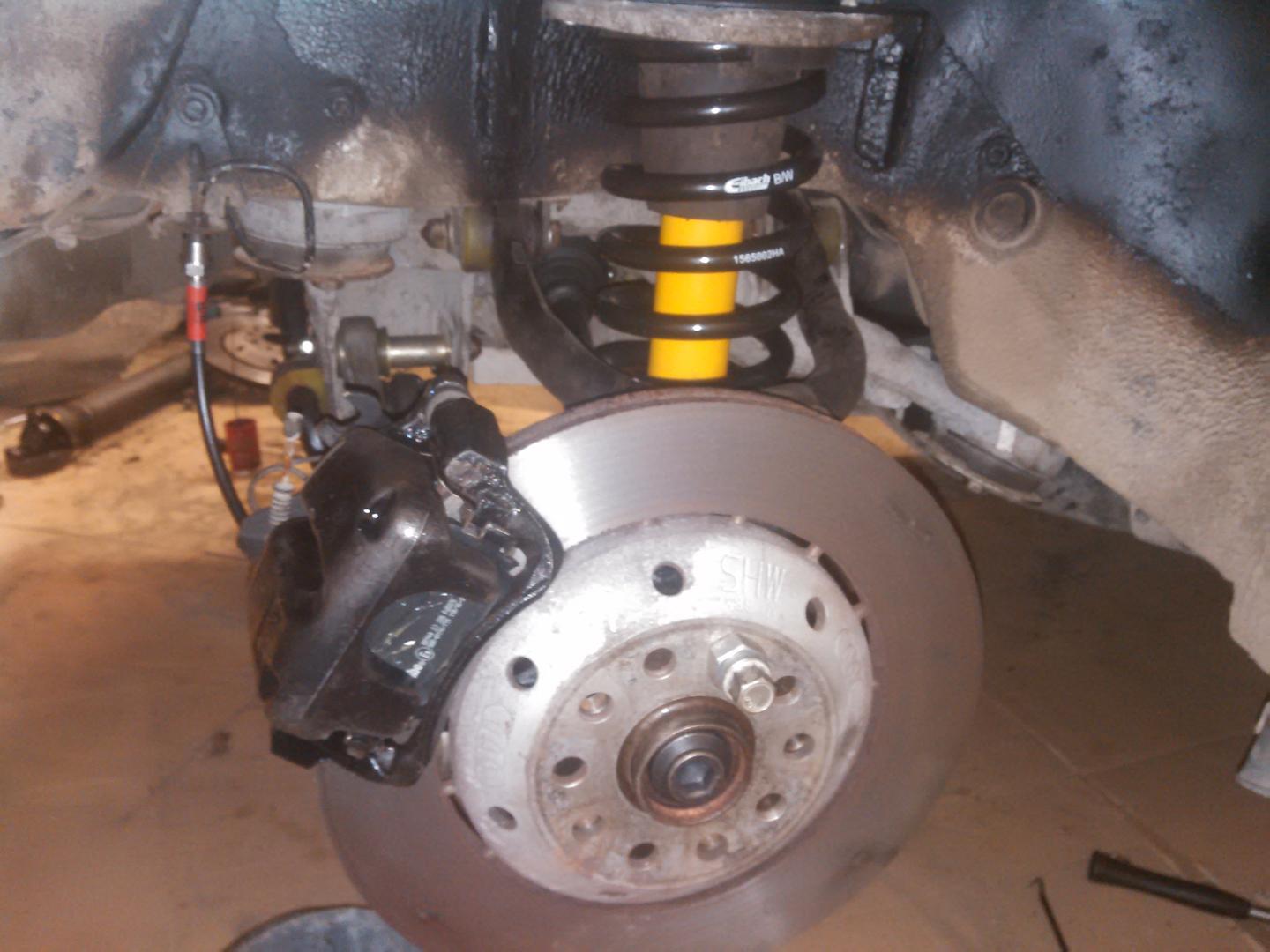 Etuakselilla apurunko jäi alkuperäiseksi (koska RS6 alumiininen ei käynyt, perhana). Aluksi purin vanhat tolpat ja tukivarret pois. Seuraavaksi purin vetarit mäkeen.