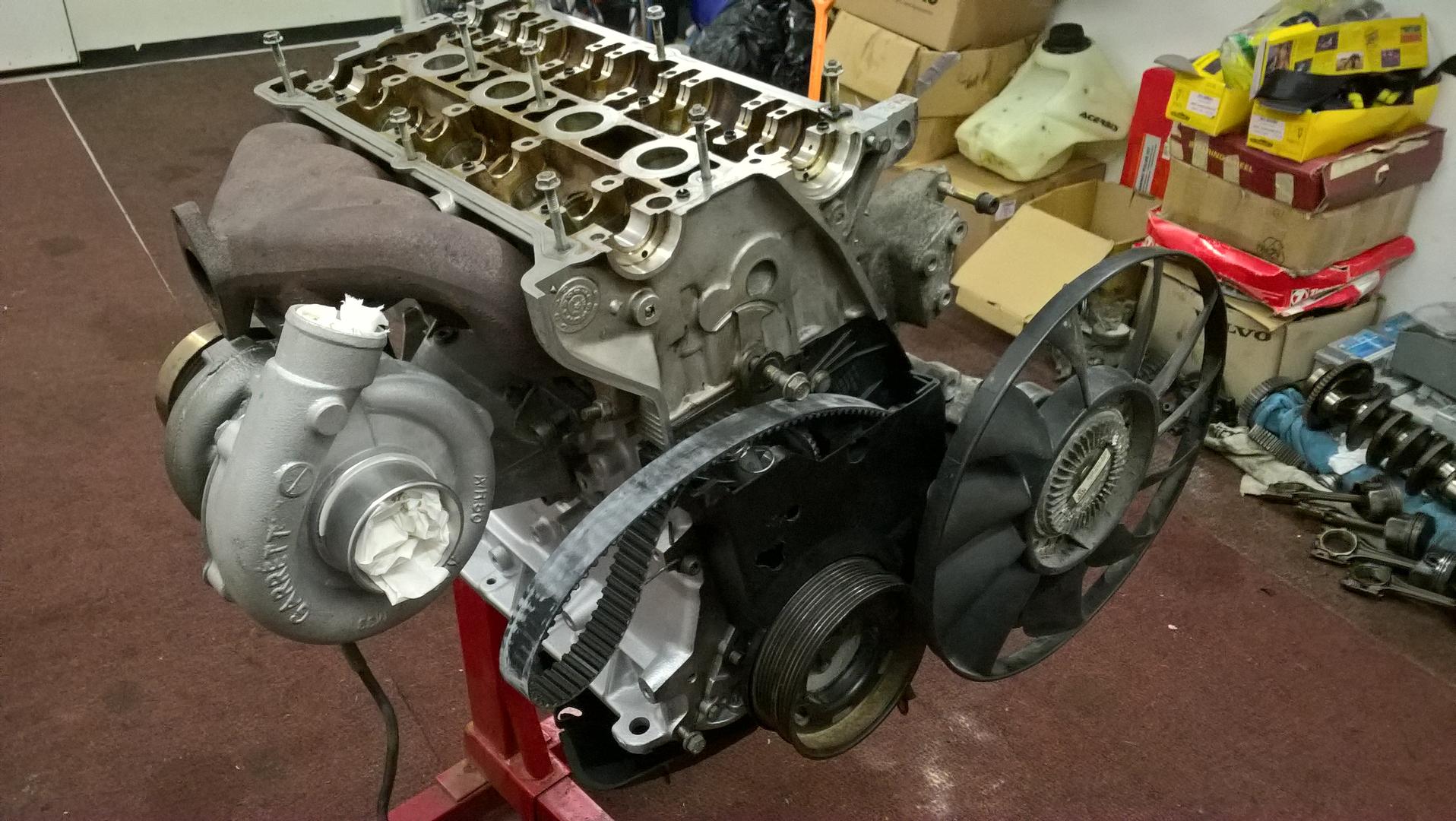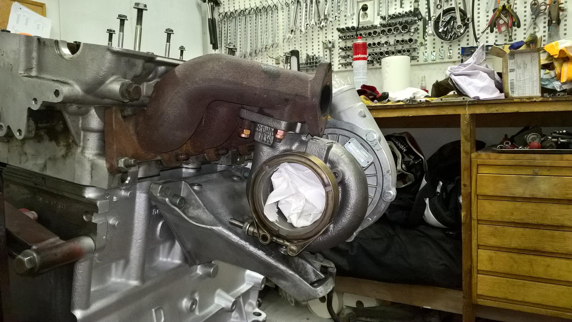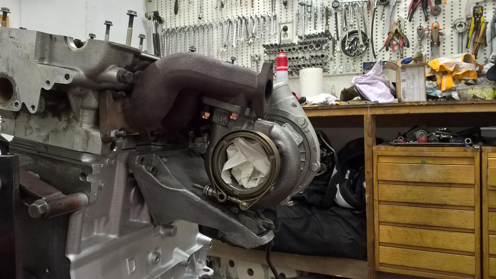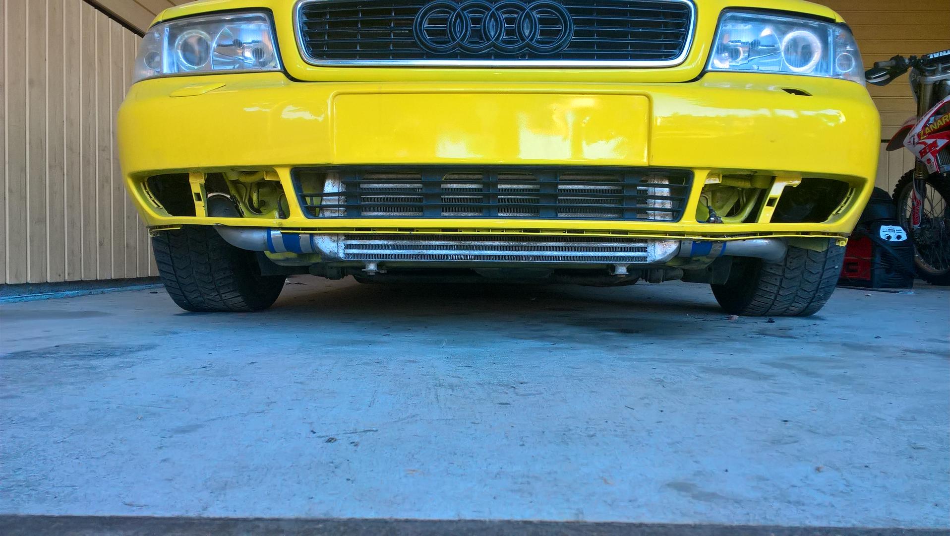 Talvella tuli tontille keltaiseksi ylimaalattu karvalakkimallinen A4 sedani. Sisusta oli jo valmiiksi purettu pois. Alustasarjana joku säädettävä kiinamalli. Mukana tuli koneeseen osia kuten kankisarja, pakosarja, hukkaportti, vauhtipyörä, nokka-akselit, jne. Mukana oli myös penkit, ratti, RS3 jarrut levyineen eteen ja taakse jotkut perusmallit. Etupään nivelet näytti remontoidulta. Hankintalistalle jäi kytkin, pakoputki ja välijäähy, jotka löytyivät foorumilta. Turbokin oli mukana, mutta hommasin Holsetin HX35/40 hybridin tilalle vähän paremmin konseptiin sopivan Fin-Turbon KT 54/57/0,82, kun sattui sekin olemaan foorumilla ja myyjä vakuutteli sen olevan just tarkastettu/huollettu.