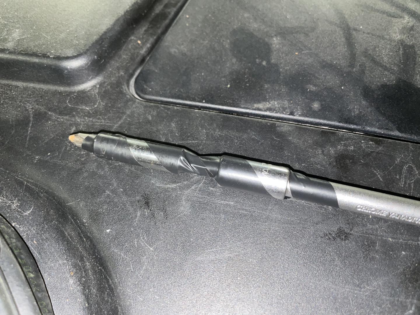 Seuraava vierihoidon toimenpide oli liimata maskin repsottava kromikehys paremmin paikoilleen: Liimauspinnat karhensin hiomapaperilla ja huuhtelin Bräkleen:llä.