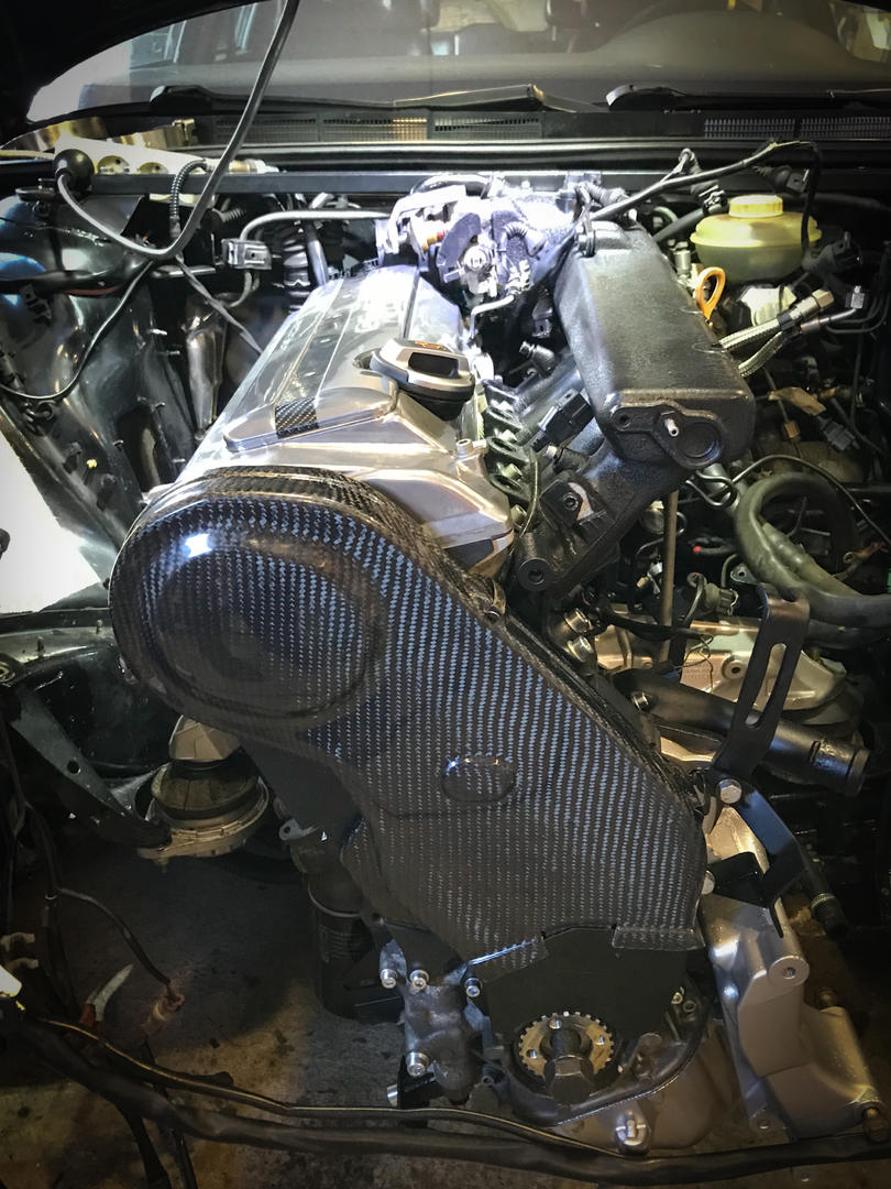 Turboksi valikoitui nyt Borg Warnerin EFR 7670. K&N putsarin sai juuri ja juuri mahdutettua ahtoputkien ja öljyletkujen väliin kun umpion taustamuoveja vähä leikkeli.