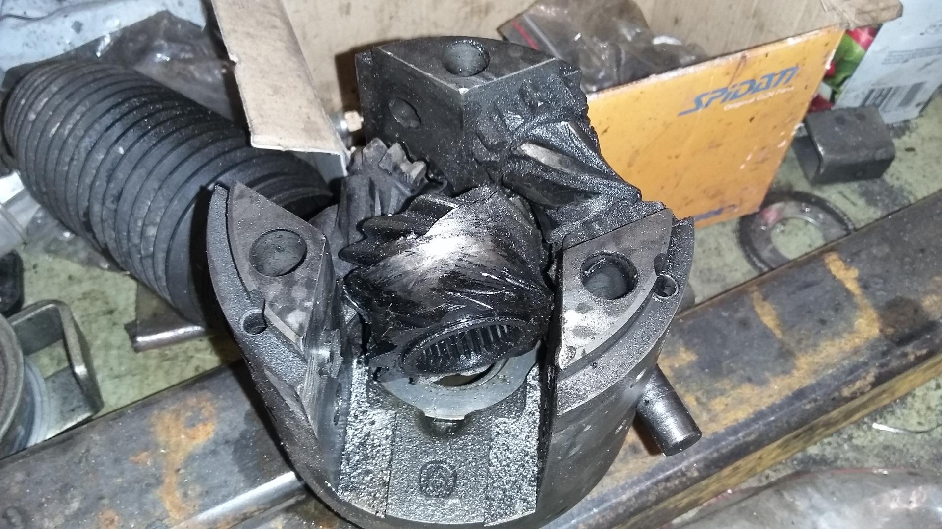 Tallille saavuttuamme aski rykäistiin pois pääasiassa luottomekaanikko Henkan toimesta ja samalla kun todettiin kytkin käyttökuntoiseksi ja hammastanko vuotavaksi, saatiin aski mukavalle työskentelykorkeudelle torsenin purkua varten. Askin hännän irrotettuani pystyin toteamaan torspon todellakin menehtyneen saamiinsa vammoihin. Onneksi niitä oli hyllyssä muutama varalla, joten modausprikat väliin ja uusi paikalleen. Ehjä hammastanko löytyi toveri Eican purkulaanilta jostain passatista ja se ruuvattiin paikalleen.