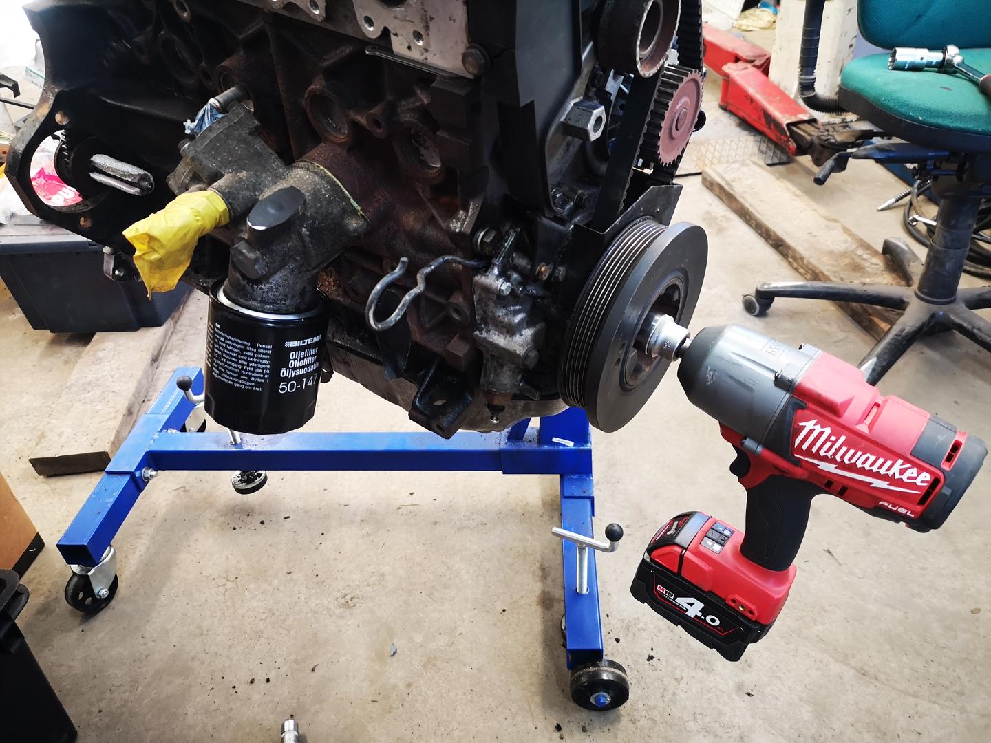 Moottoria kun ei löytynyt, niin vastaan käveli purkukuntoinen 2.2t automaatti farkku urssi edukkaaseen hintaan, josta saisin motin ja muutamia muita arvokkaita varaosia. Kun varaosa urssi oli purettu atomeiksi ja kori lähtenyt paalaukseen niin oli aika tsekata missä kunnossa 330tkm ajettu moottori on ja minkälaisella askartelulla siitä saisi tehtyä kestävän pannun Ursulan uudeksi sydämeksi.