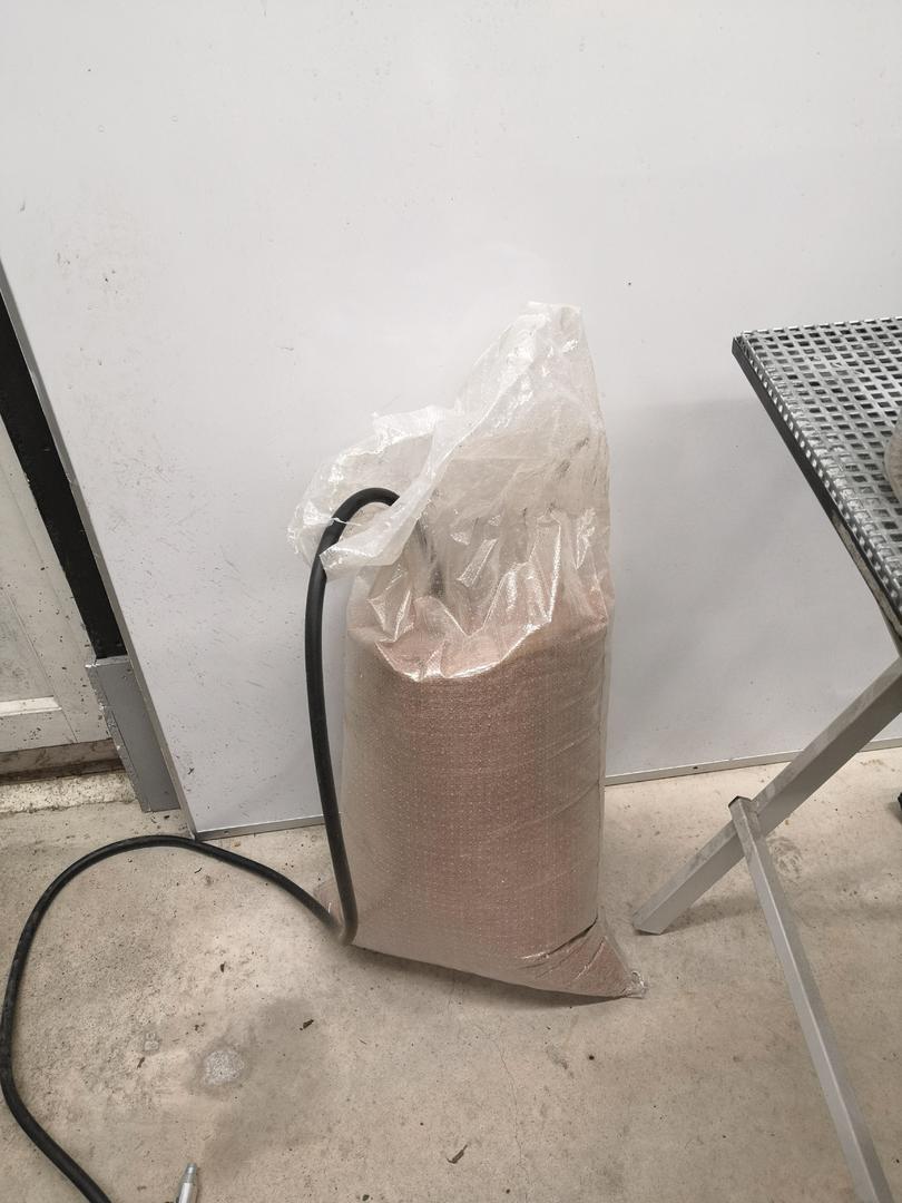 Tämän puhdistukseen olin varautunut suoraan säkistä imevällä hiekkapuhalluspistoolilla ja pähkinänkuorirouheella.
