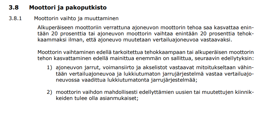 Mönjän paksuus kaulan ympärillä oli varmaan 3mm, joten sillä on jo varmasti merkittävä vaikutus tehoon ahdetussakin koneessa.