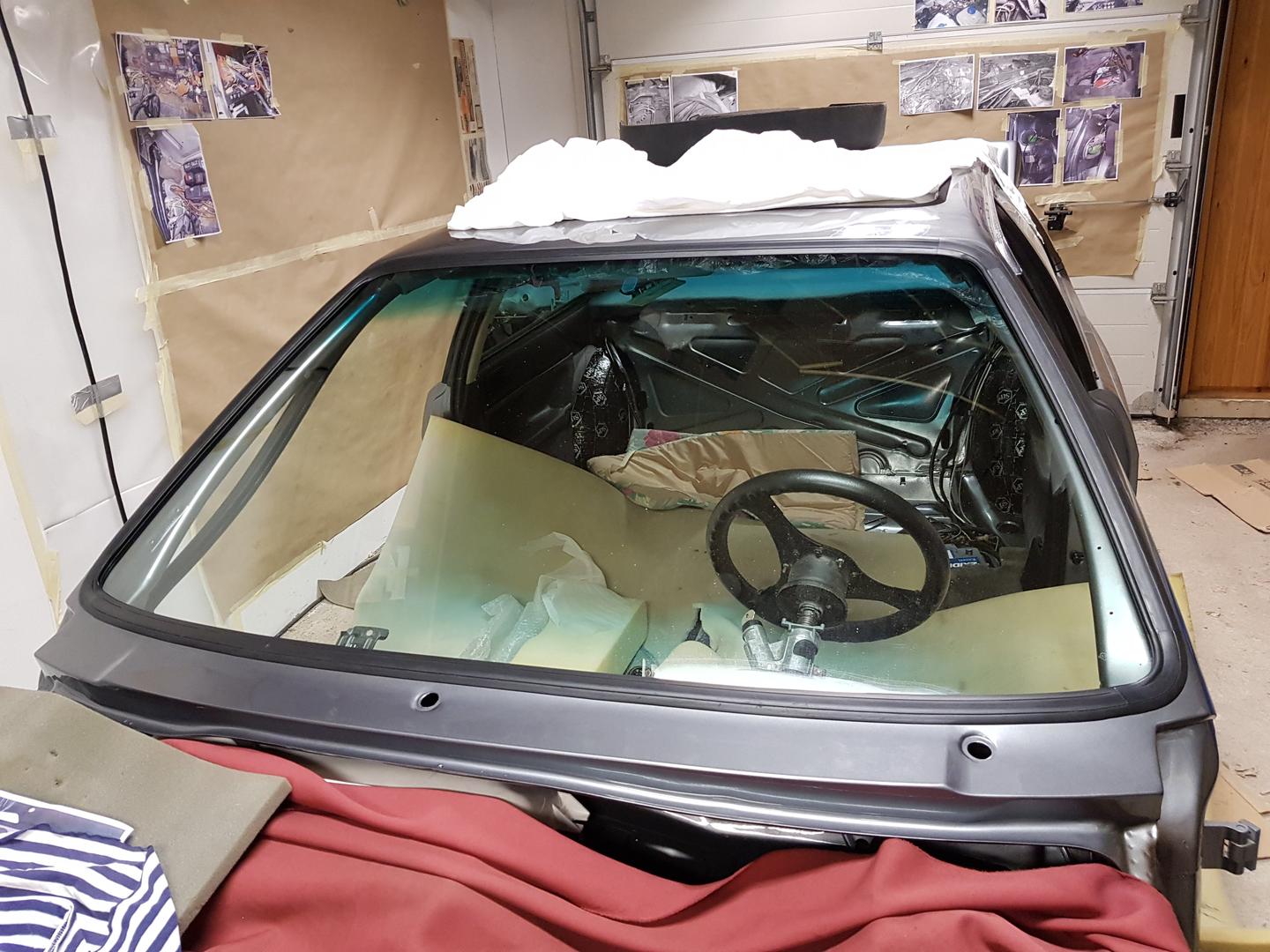 Ja sitten tänään ehdin toisen takasivupahvin kimppuun ja tuulilasikin meni ehjänä paikalleen :)