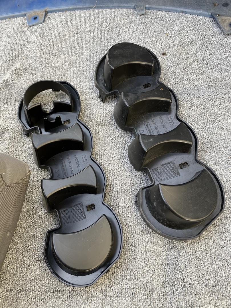 Tilasin juomateline-osan jo aiemmin, ja tilauksessa on vielä juomatelineen ympärysmuovi. Kunhan tuokin tulee, pääsee asentamaan nämä autoon.