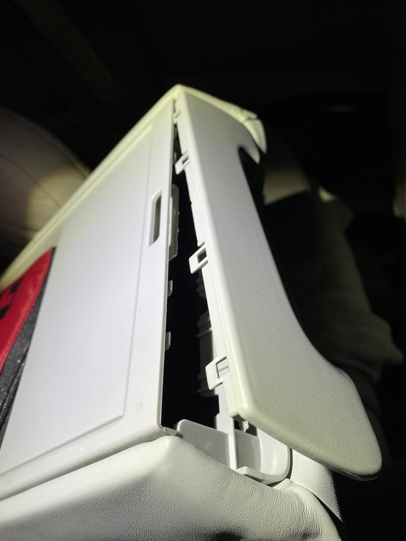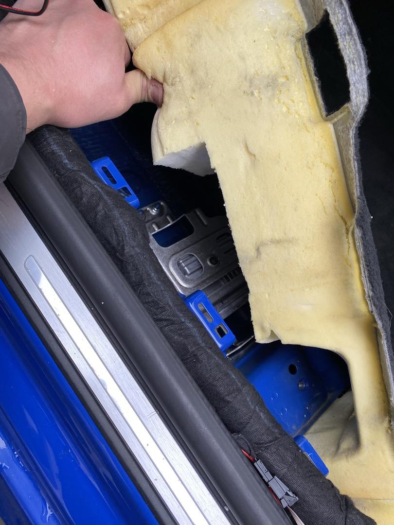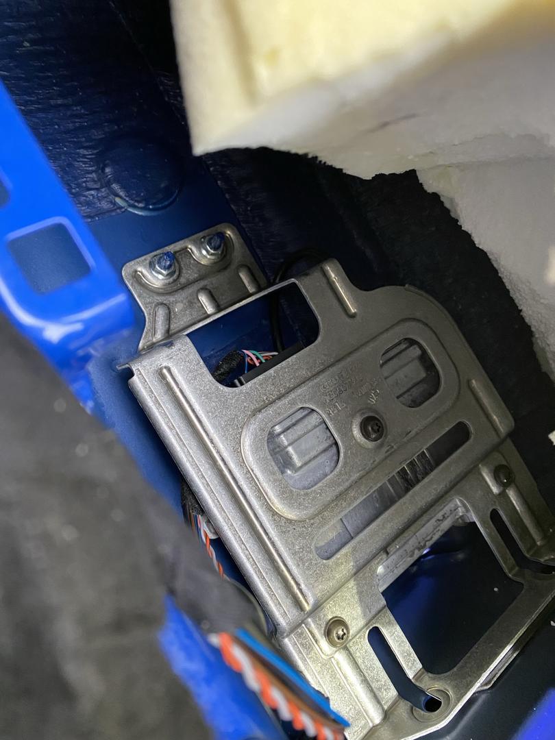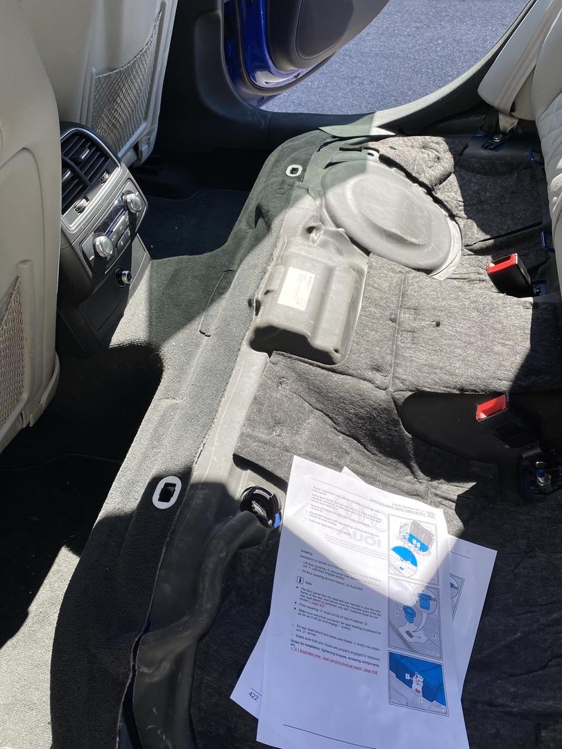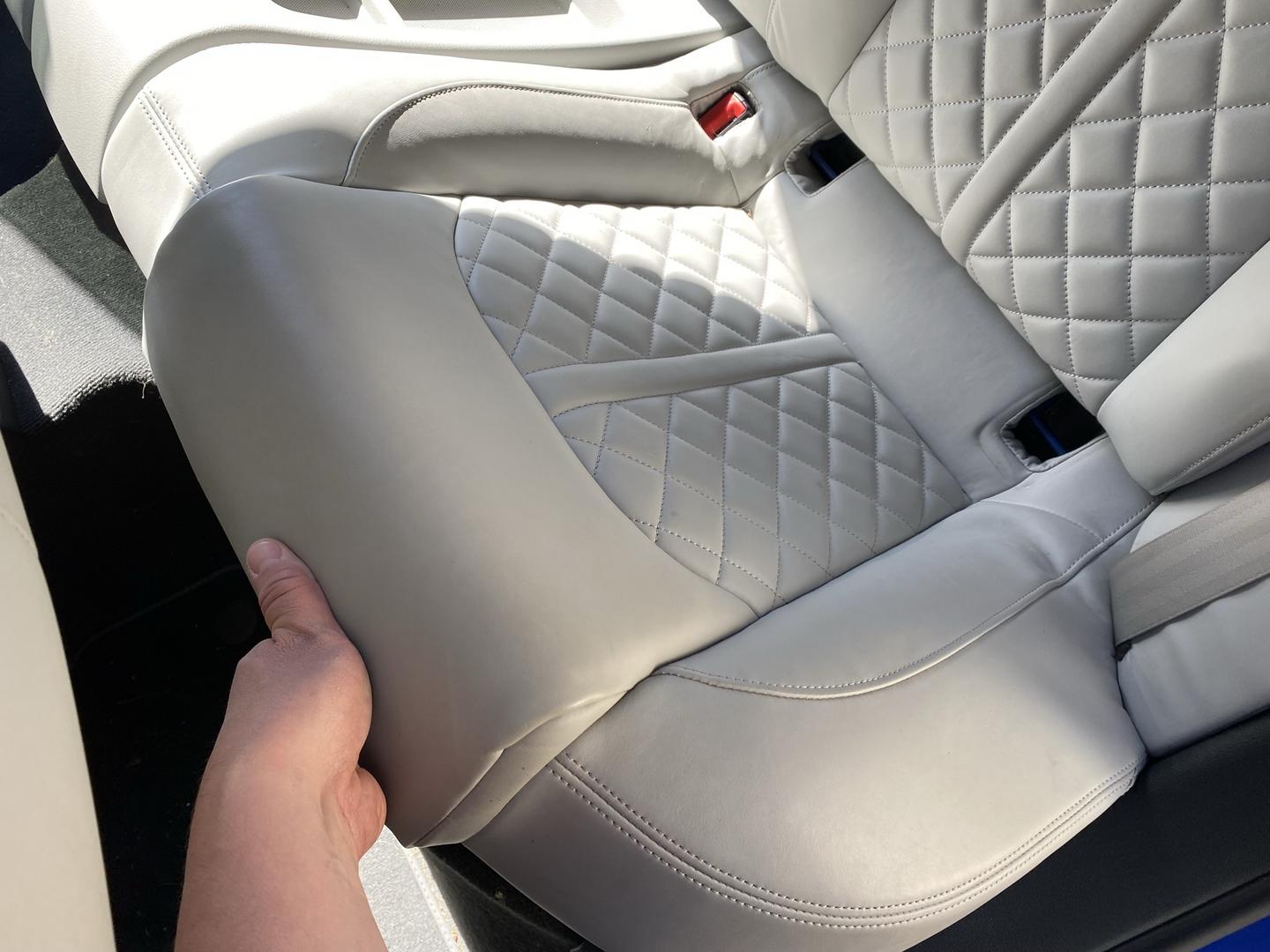 Ensimmäiseksi irroitetaan isofix-muoviosat, ja tämän jälkeen penkki lähtee nostamalla etureunasta ylöspäin. Alta löytyy (tai penkkiin jäänyt kiinni) kaksi valkoista kiinnikettä, jotka hyvin suurella todennäköisyydellä rikkoutuvat irroittaessa, joten nämä kannattaa hankkia etukäteen valmiiksi. Osanumero on 4L0 886 373 ja hinta on noin 2,5€/kpl. Itseasiassa myös Audin omat ohjeet ohjeistavat käyttämään aina uusia kiinnikkeitä penkkiä takaisin asennettaessa.