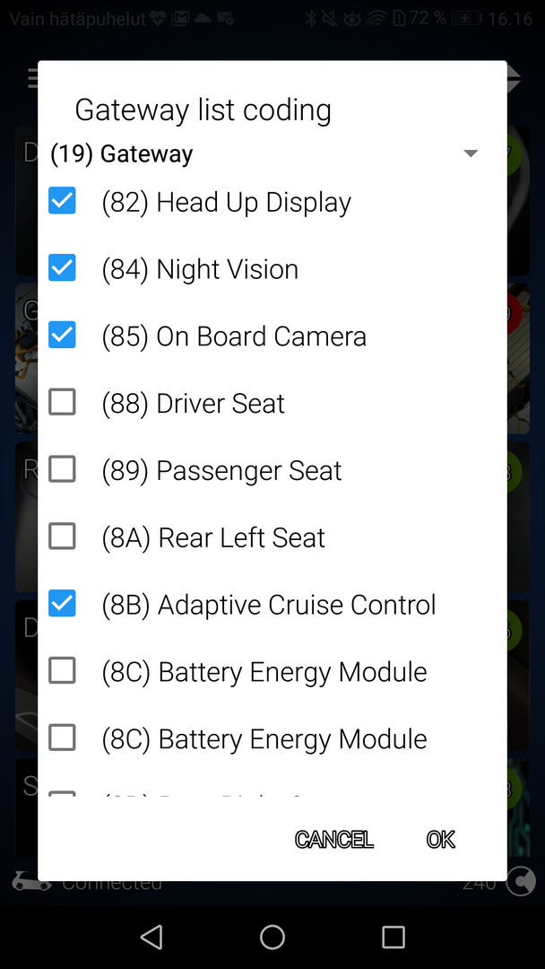 5. MMIn koodaus eli Night Vision Assist -valikko näkyviin MMIn Driver Assist-valikkoon.
