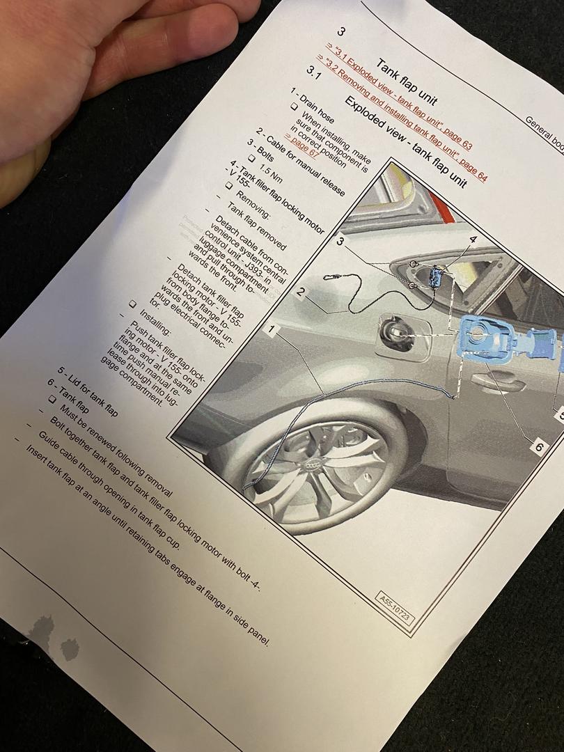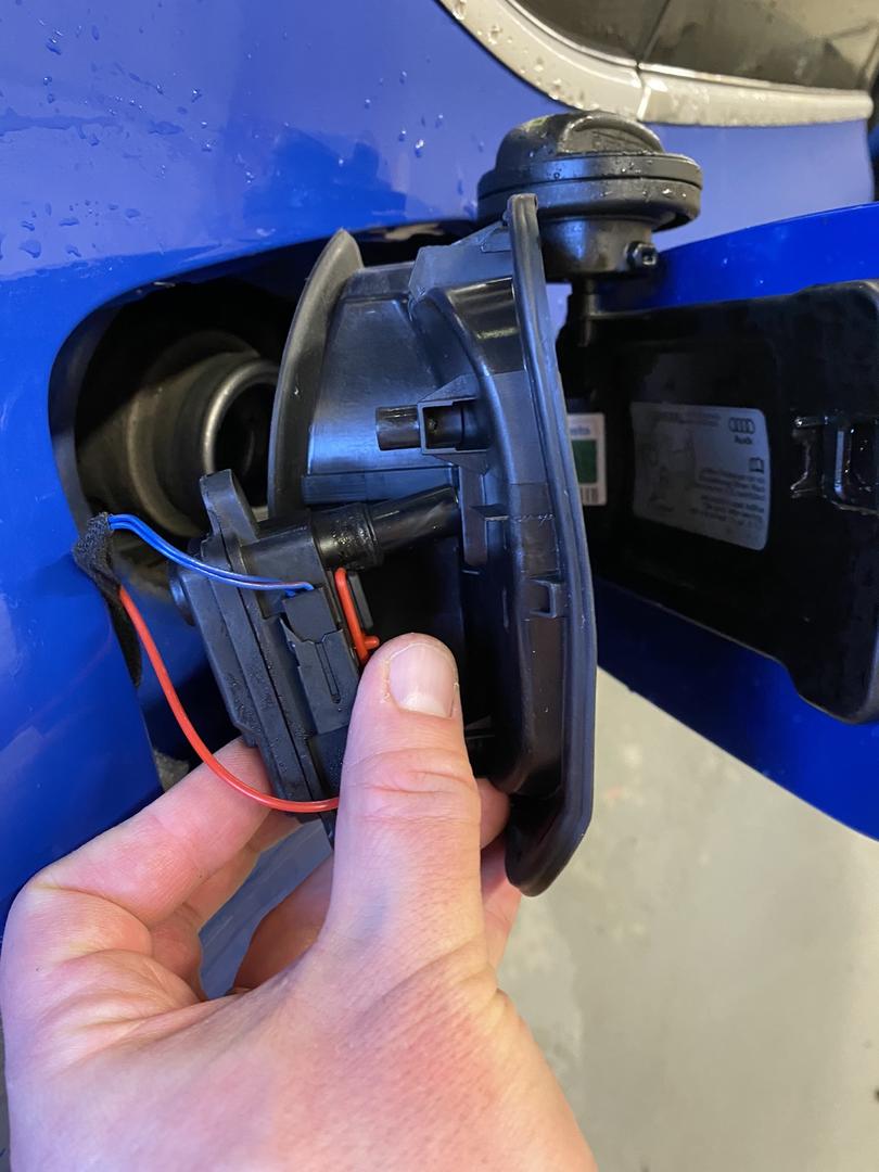 • Suunnittelematon projekti numero 2; tankinluukun lukitusmoottori. Tämäkin on tuttu tyyppivika Audeissa, ja omassa autossa oireilu alkoi ensimmäiseksi siten, ettei luukku enää talvella avautunut, ja sen jälkeen kun avautui, ei kestänyt kiinni ilman että ovet ovat lukossa. Lisäksi lukitusmoottori antoi vielä vikakoodia, joten uusi osa vain merkkiliikkeen kautta tilaukseen.