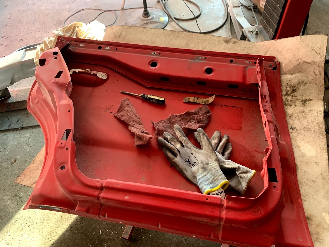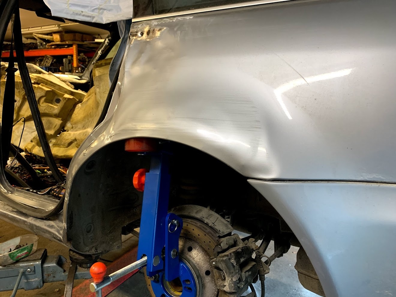 Kyllä se ovi istuu ihan nätisti. Laitoin kaareen tinaa että pakkelia tarvisi mahdollisimman vähän. Ei siinä lokarin pokkauksessa ollut juuri mitään tekemistä, vähän tinaa ja naputtelua. En muista että olis tarvinut kovinkaan paljon taputella.
