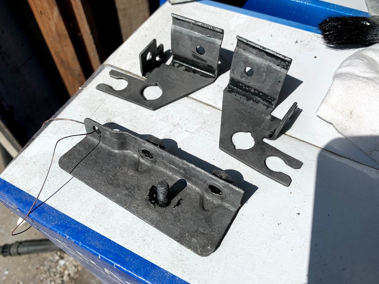 Ovien saranat on kiinnitetty tehtaalla ennen maalausta, ja niiden alla on melko varmasti kaikissa ruostetta. Otin ne siis irti ja purin saranat osiin että ne sai maalattua kunnolla joka puolelta. Taas hurahti päivä tai kaksi.