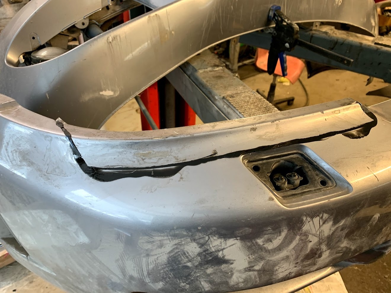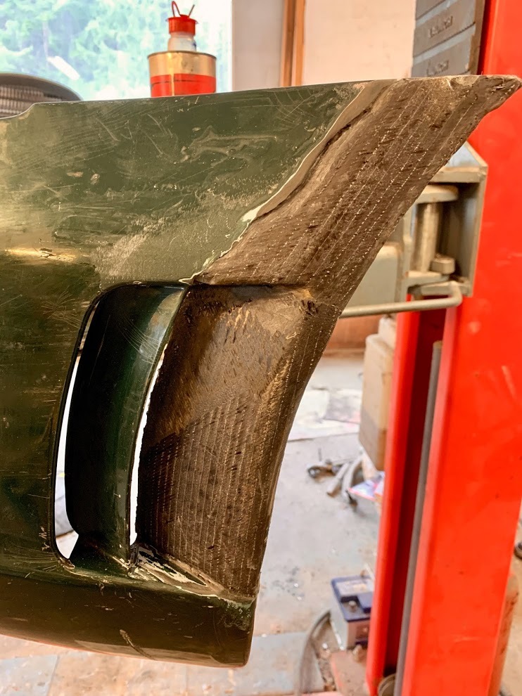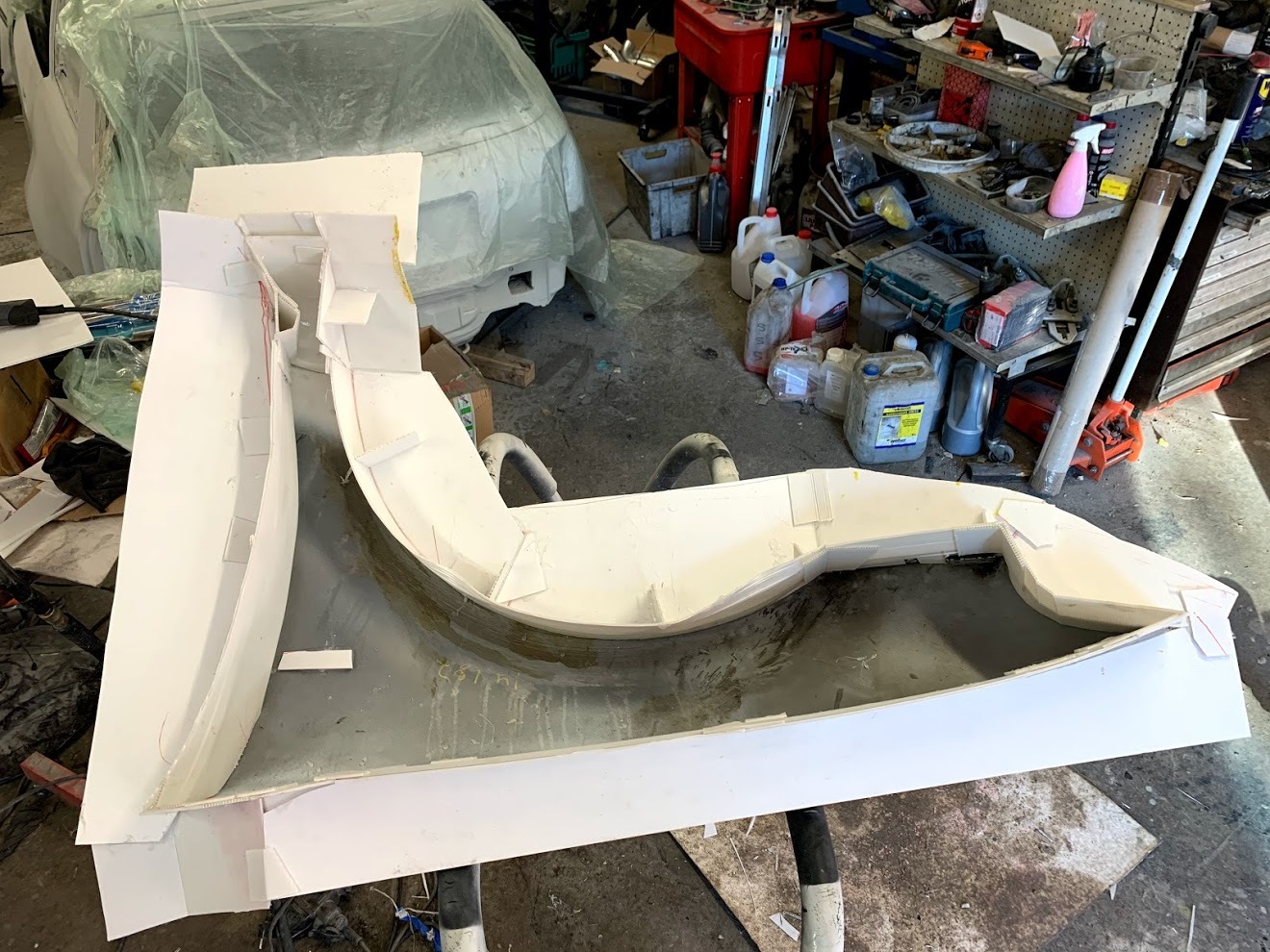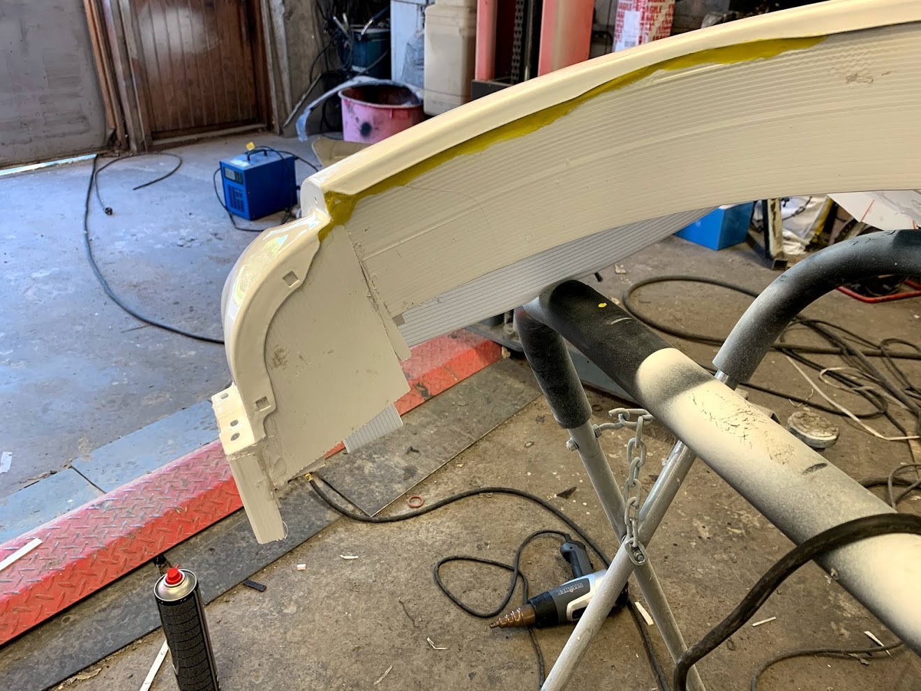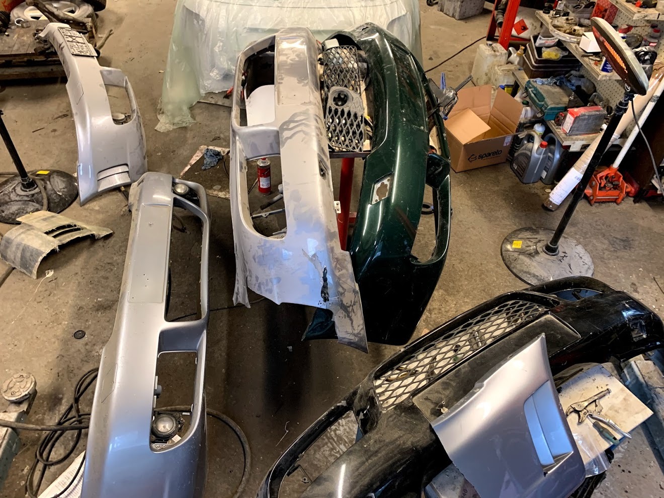 Joku pyytää jenkeissä ehjästä puskurista 3250$, eikä nämä saksassakaan ole halpoja saati helppoja löytää joten ne kannattaa korjata. Ja onpahan varaosia. Tein kolme puskuria maalausvalmiiksi, kolme muuta saa olla rauhassa.