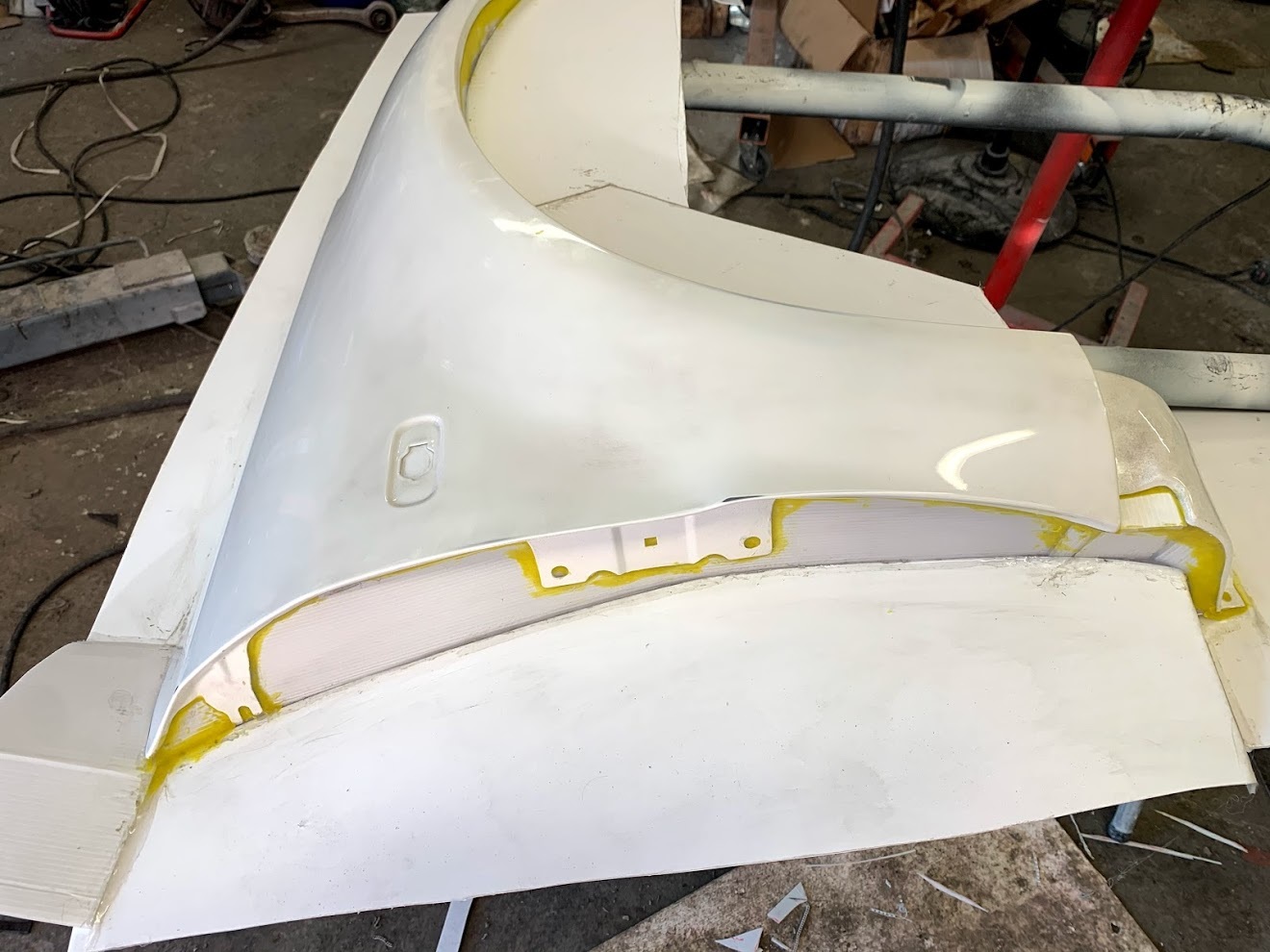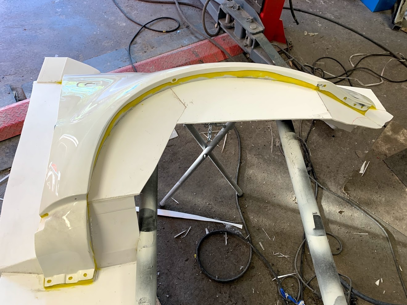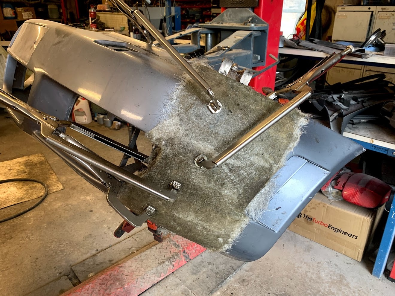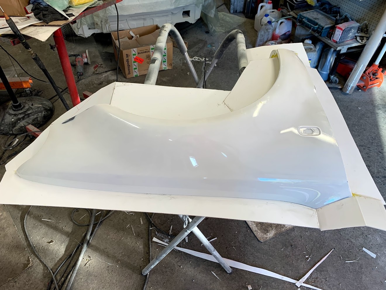 Joku pyytää jenkeissä ehjästä puskurista 3250$, eikä nämä saksassakaan ole halpoja saati helppoja löytää joten ne kannattaa korjata. Ja onpahan varaosia. Tein kolme puskuria maalausvalmiiksi, kolme muuta saa olla rauhassa.