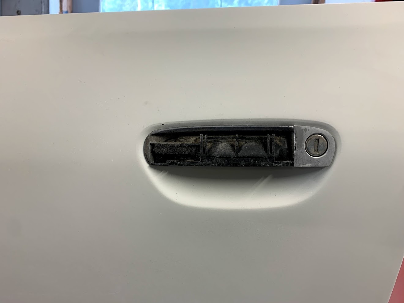 Mittailin että lukon saa tarvittaessa auki avaimella jossa ei ole päätä. Jos ei kuitenkaan, niin sitten kahvan pinta pitää irroittaa, se onnistuu ulkopuolelta. Lukkopesät poistamalla/piilottamalla sain pari pikku detailia joilla autosta tulee siistimpi. Sitä ei välttämättä edes huomaa jos ei tajua katsoa.