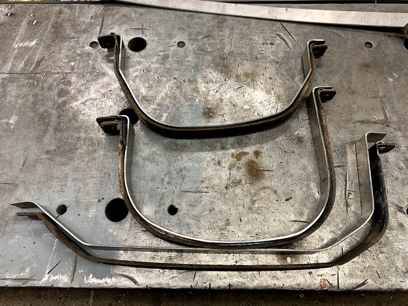 Tein "polven päällä" bensatankille lämpösuojan rosterista koska alkuperäistä ei enää saa. Ja myös varuilta tein tankin kannakkeet rosterista, mutta alkuperäisistä tulikin kuitenkin niin hyvät että jätin nuo uudet hyllyyn odottamaan.
