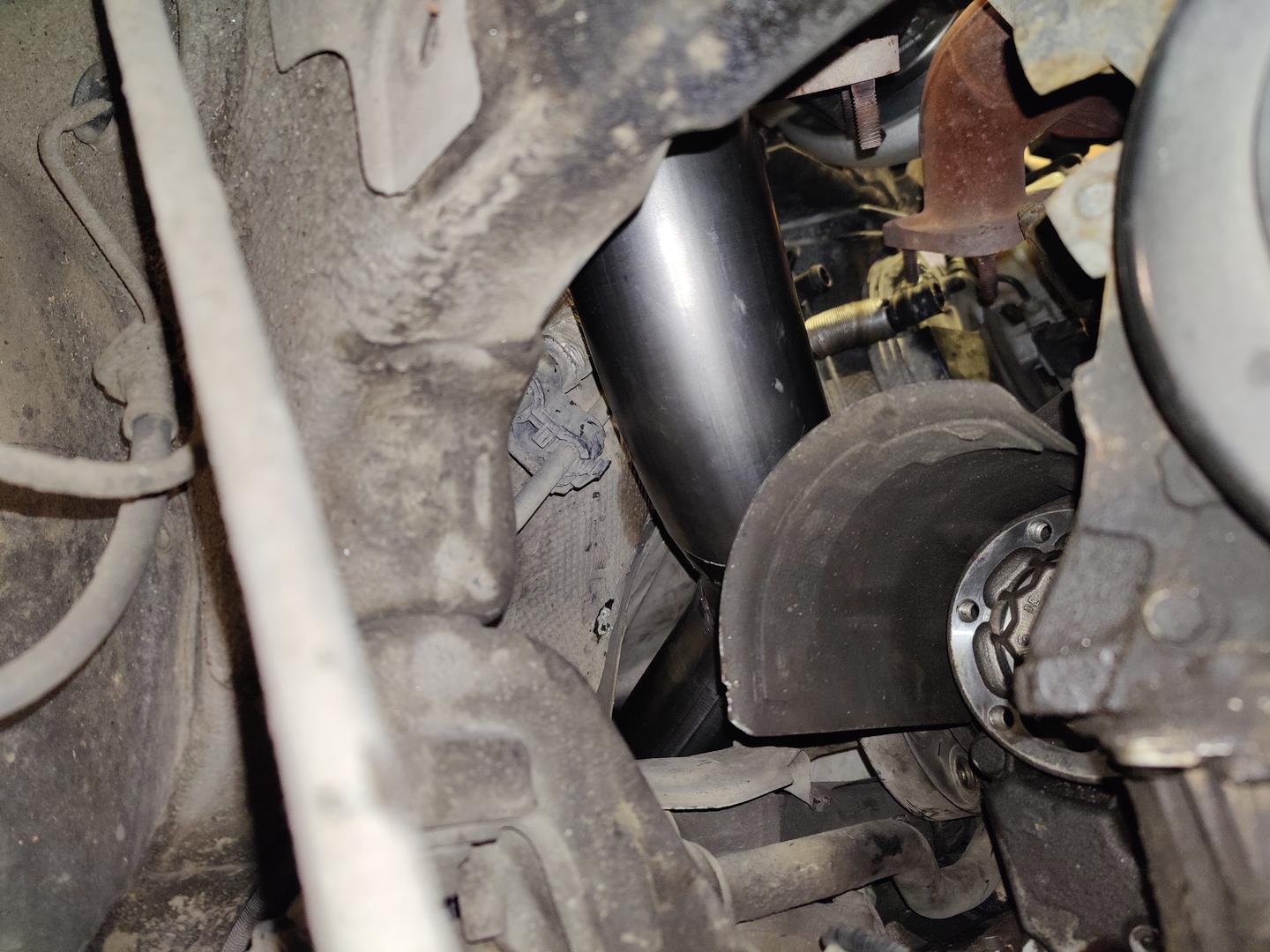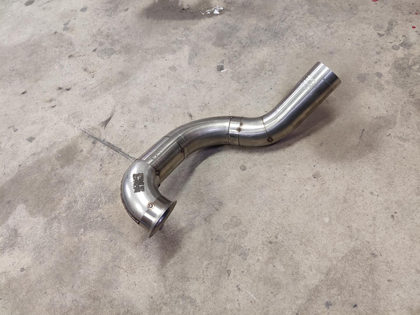 Turbokin saapui ja päästiin Porkkiksen kanssa sovittelemaan sitä paikalleen. Ajatus oli, että pitäisin alkuperäisen imusarjan ja sovittelisin ahtimen vaihteiston päälle.Tarkoitus on pitää alkuperäiset pakosarjat ja niiltä vetää 3-1-putket jaettuun pakopesään. Siinä kohtaa, kun koitettiin 100-millisen pakotorven (3.5" tulossa) ja parin 50-millisen kanssa sovitella kuumia putkia moottorin ja jarrupääsylinterin välistä imusarjan alta, todettiin, että jospa kuitenkin koittaisi sitä tuonne moottorin takapuolelle. :D