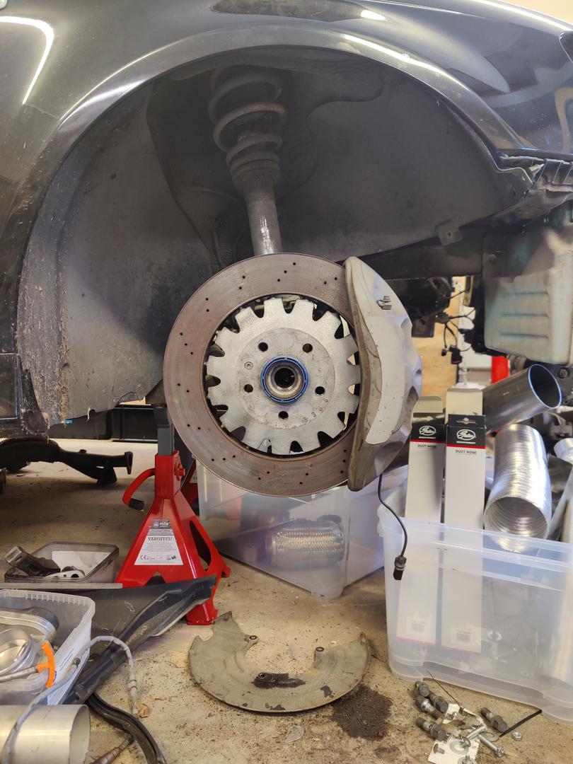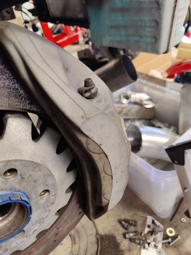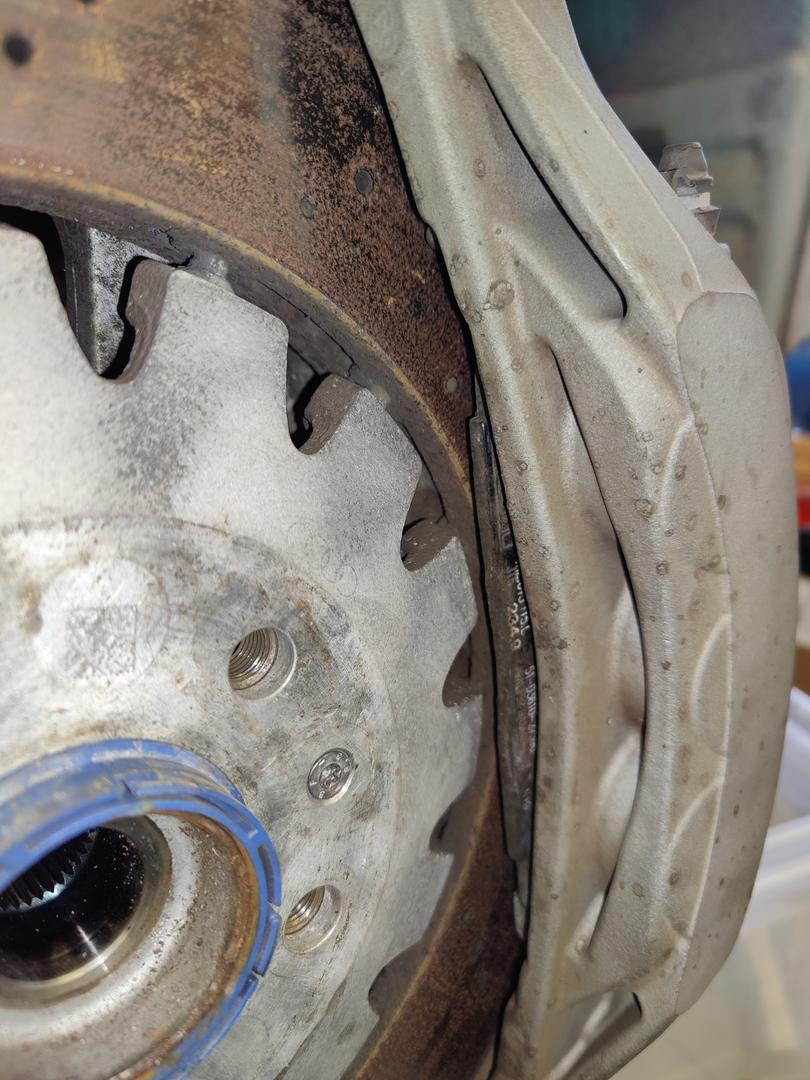 Jarruhommia piti miettiä myös, koska haluan isot jarrut myös ulkonäkösyistä. :D Jarrusatuloiden osalta olin alun perin ostamassa Q7:n (4L) 6-mäntäsatulaa, mutta se osuisi kiinnitysreikiin 350-millisellä levyllä, joten isompaa levyä ei oikein saa, kun etäisyys ei juuri muutu ja reiät menevät lähes päällekkäin.