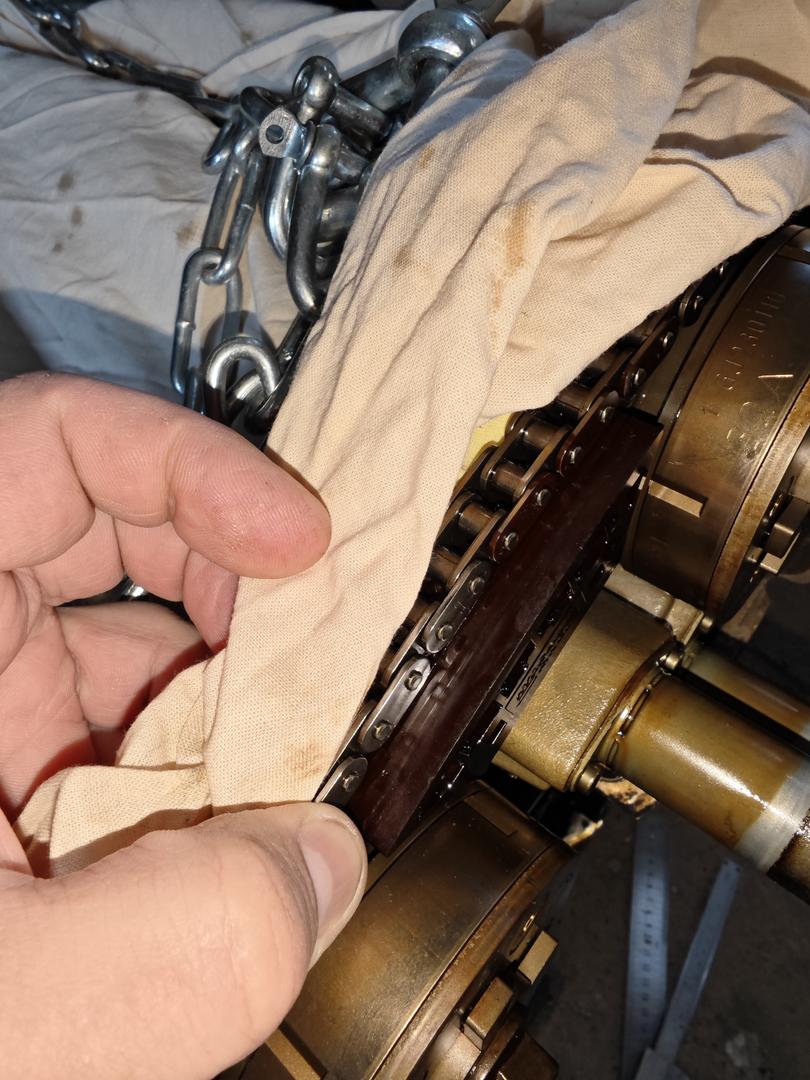 Jakopääkin näyttää melkoisen priimalta. Ei juuri sormeen tunnu uria laahaimissa, joten en usko olevan yli 200 tkm ajettu jakopää. Osaako joku sanoa tuon ketjun logosta, että minkä valmistajan ketju on kyseessä? Google ei tuolla oikein löytänyt mitään.