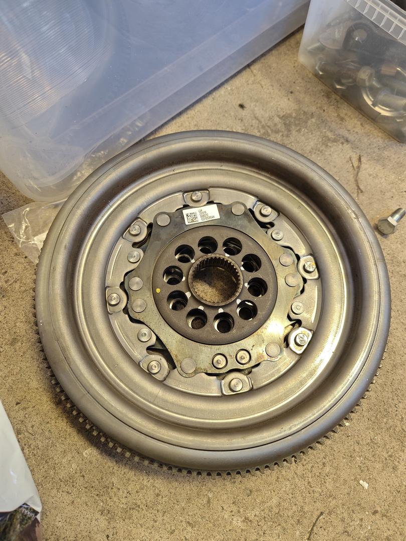 Aika tuoreen näköinen vauhtipyöräkin löytyi. Löytyi siis syy, miksi paskottuja osia löytyi moottorin läheisyydestä. :D