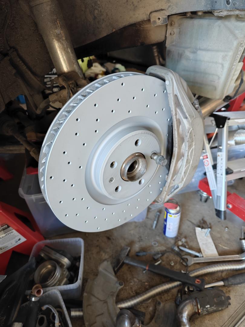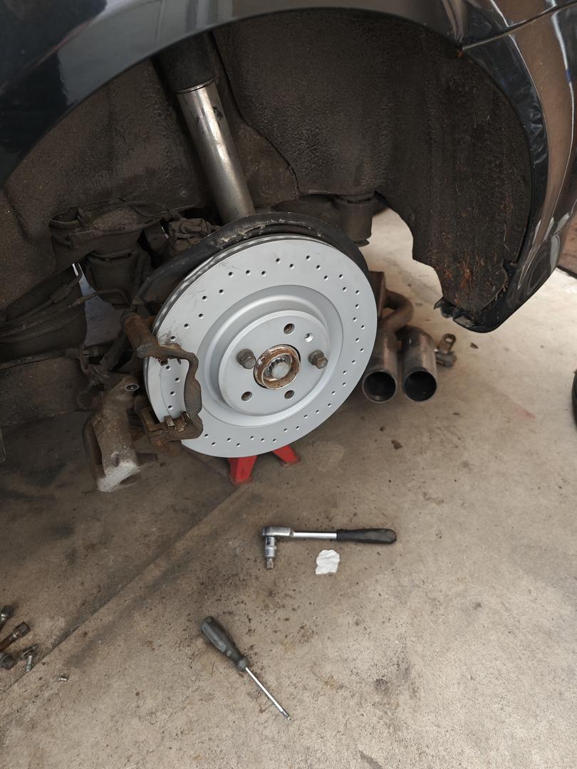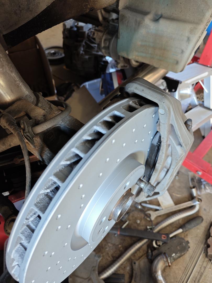 Samalla huomasin, että saaduista TTRS:n etujarrulevyistä oli irrotettaessa hakattu keskiö lommolle ja sorviin kiinnitettäessä kehä vipatti varmaan 2 mm. Eipä sitä oikein saanut oikaistua kunnolla ja kun vielä oli vajaan millin päässä alarajasta, niin loppui kiinnostus. Ajattelin, että laitetaan sitten ostohousut ihan vyöllä kiinni ja klikkaillaan sellaiset osat, ettei tarvii miettiä.