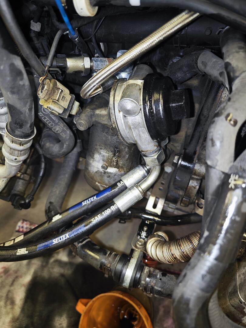 Eli ryöstölaippa toimii hyvin ilman lämmönvaihdinta, mutta huonosti lämmönvaihtimen kanssa. Ja lämmönvaihdin itsessään aiheuttaa painehäviötä. Joten mennään nyt ilman lämmönvaihdinta ja ryöstölaipalla. Talvella pitää varmaan jäähykennoa suojata, mutta se on sen ajan murhe. Lasken jäähdyttimen ja moottorin tyhjäksi ja lyön Mobil 1 5W50 sisään, jos se nostaisi vähän kuuman öljyn painetta nykyiseen 5W30:een verrattuna. Ja öljynvaihdon aika on muutenkin. Öljypumpun paineventtiili näyttää aukeavan 5 bar kohdalla, siihen stoppaa terävästi viileillä öljyillä.