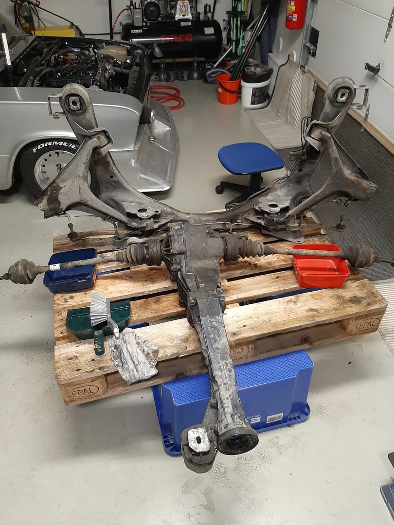 Tällä hetkellä quattron takakelkka + hilppeet (paitsi laatikko) irti ja puhdistettu ja maalattu mustaksi odottaen asennusta. Konetta ei vielä otettu irti, menee todennäköisesti alkuvuoteen/alku kevääseen jolloin itse swappiakin aletaan tekemään. Kasikymppi jokapäiväisessä ajossa ja keväällä otan seisontaan remonttia varten.