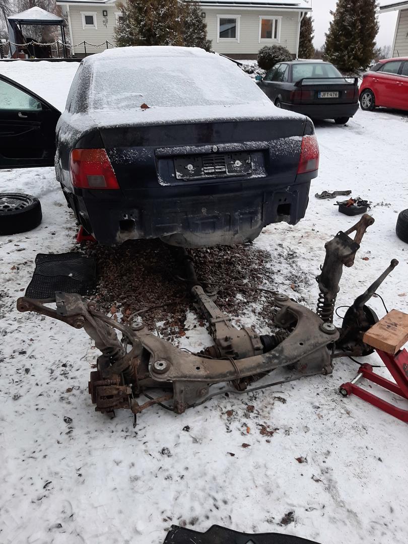 Etsin sopivat osien luovuttajat joiksi tuli -97 passat aeb koneella jonka sai ajettua turusta hämeenlinnaan ongelmitta (250€) ja toinen -96 audi b5 quattro v6 joka haettiin railerilla orimattilasta(350€). Tekniikalle ja voimansiirrolle ei oikeastaan hintaa jäänyt kun quattrosta löytyi sporttinahkasisusta ehjänä ja passatista ehjä katti sekä molemmista muita osia mitä saa myytyä eteenpäin. Passatista siis konehuoneen osat ja quattrosta kaikki voimansiirron osat eli lopputuloksena tulisi frankenstein audi b4.5.