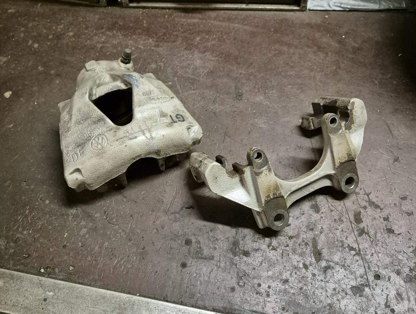 Talvella on tullut sitten aloitettua harrastaminen etupään remontin muodossa. Vetoakselit näihin on sen verran edullisia, että vaihtoon meni koko akselit eteen. Samalla pääsi katsomaan mikä jarruja vaivaa. Toisen puolen etusatulan mäntä oli niin jumissa että hetken sai pöydällä herkistellä ennen kuin tuli ulos paineilmalla. Kun satulat oli pöydällä niin ne tuli maalailtua ja vaihdeltua uudet levyt/palat/liut/männät/tiivistesarja.