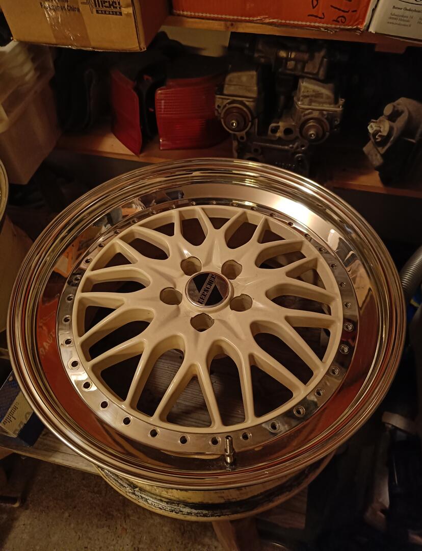 Auto näytti sen verran korkealta niin coiloverit löysi tien alle remontin yhteydessä. Eteen uusittu samalla yläpäät ja kääntölaakerit.