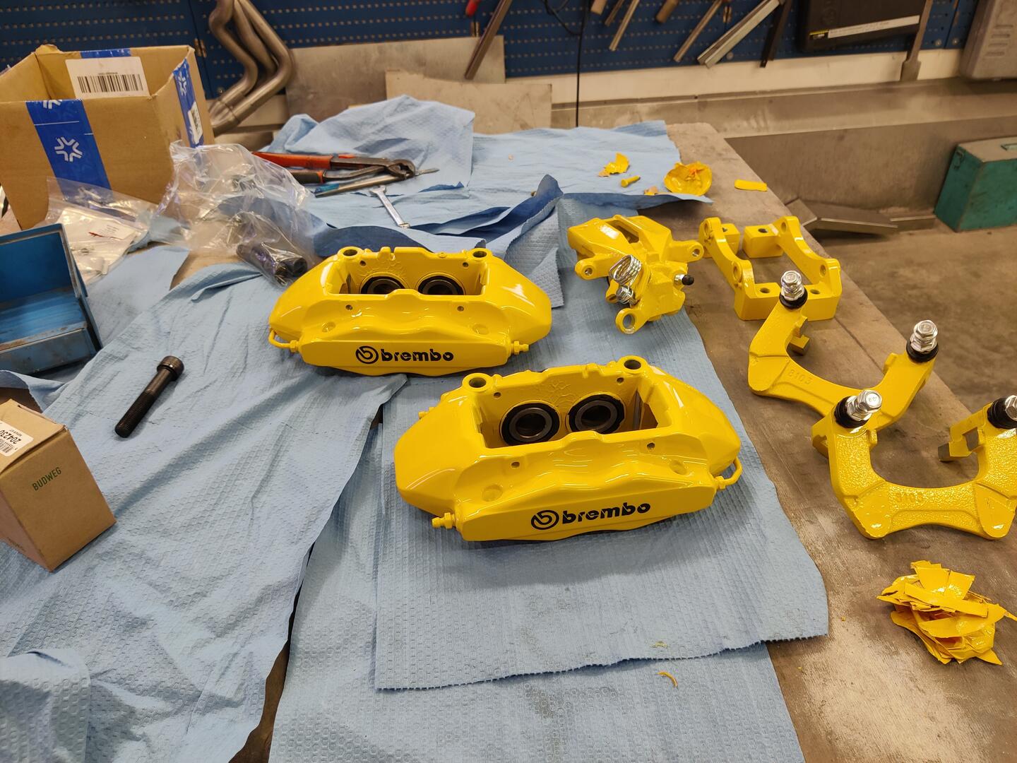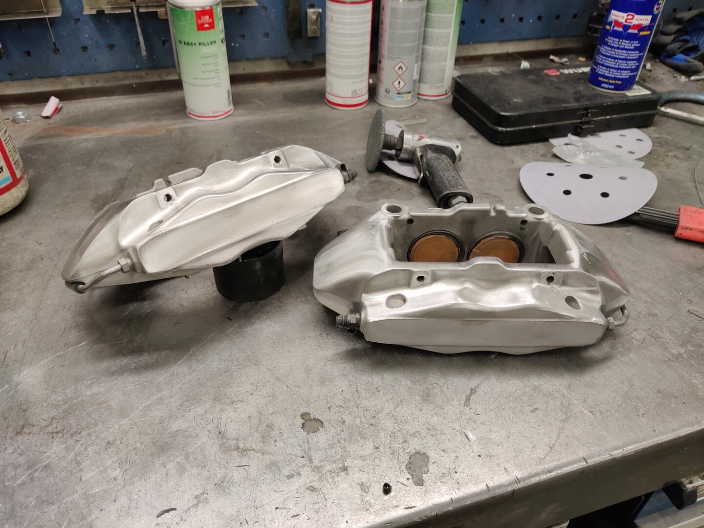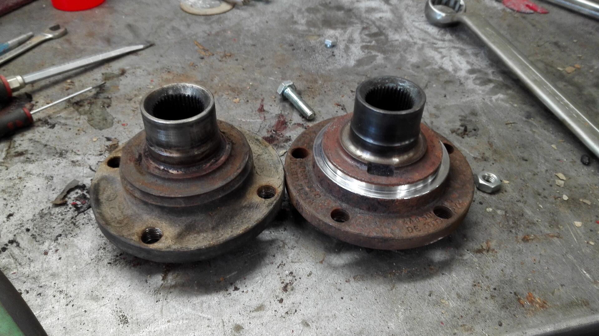 Ensimmäinen muutos joka tehtiin jo aiemmin valmiiksi hyllyyn odottamaan, oli pulttijaon muuttaminen 5pulttiseksi. c4 quattro 100 takanavoista sorvataan noin 5mm pois jolloin ne sopivat eteen. Taakse tuli b5q navat, näillä toki raideleveys kasvaa hieman takana.