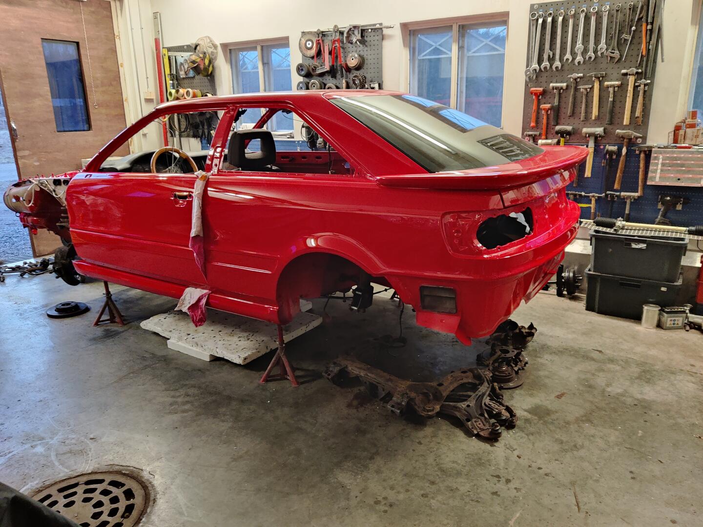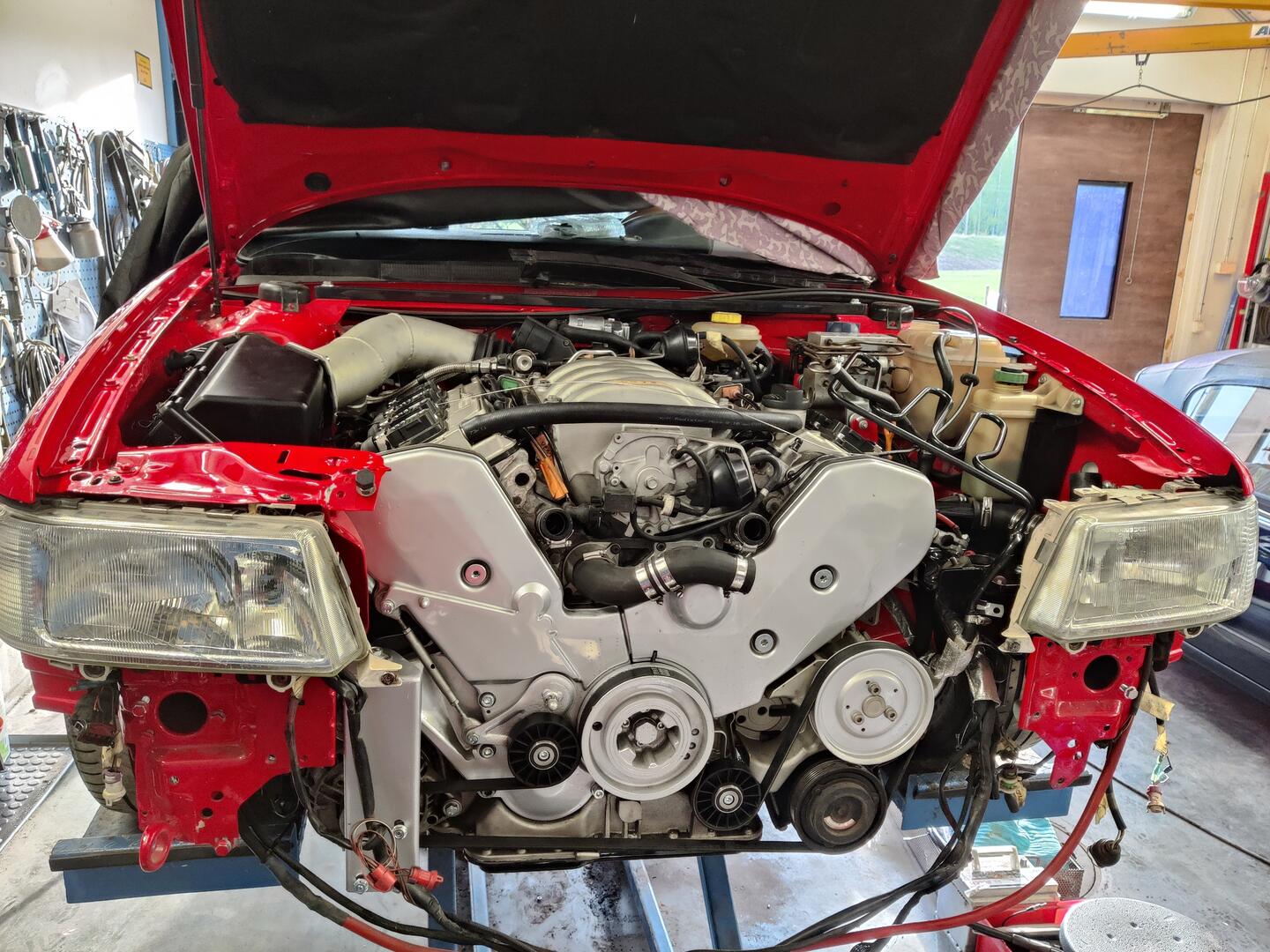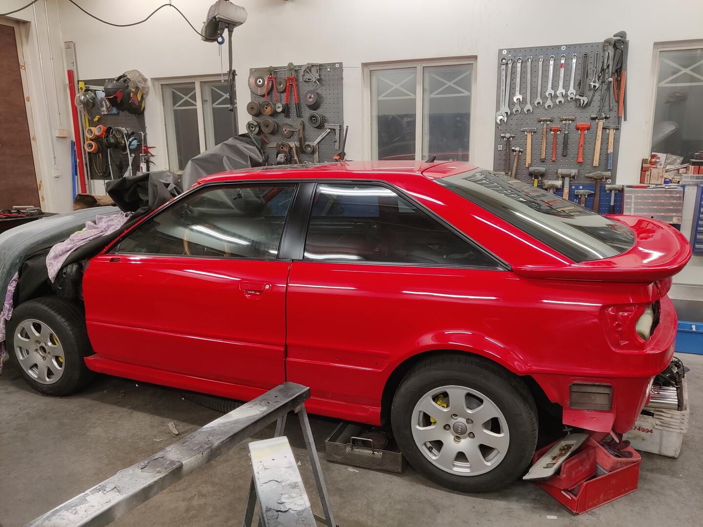Kyseessä on siis vuoden 1992 Audi Coupe quattro 2.8 aah moottorilla, joka tosin nyt on korvattu s8 napatulla 4.2 akh veekasilla.