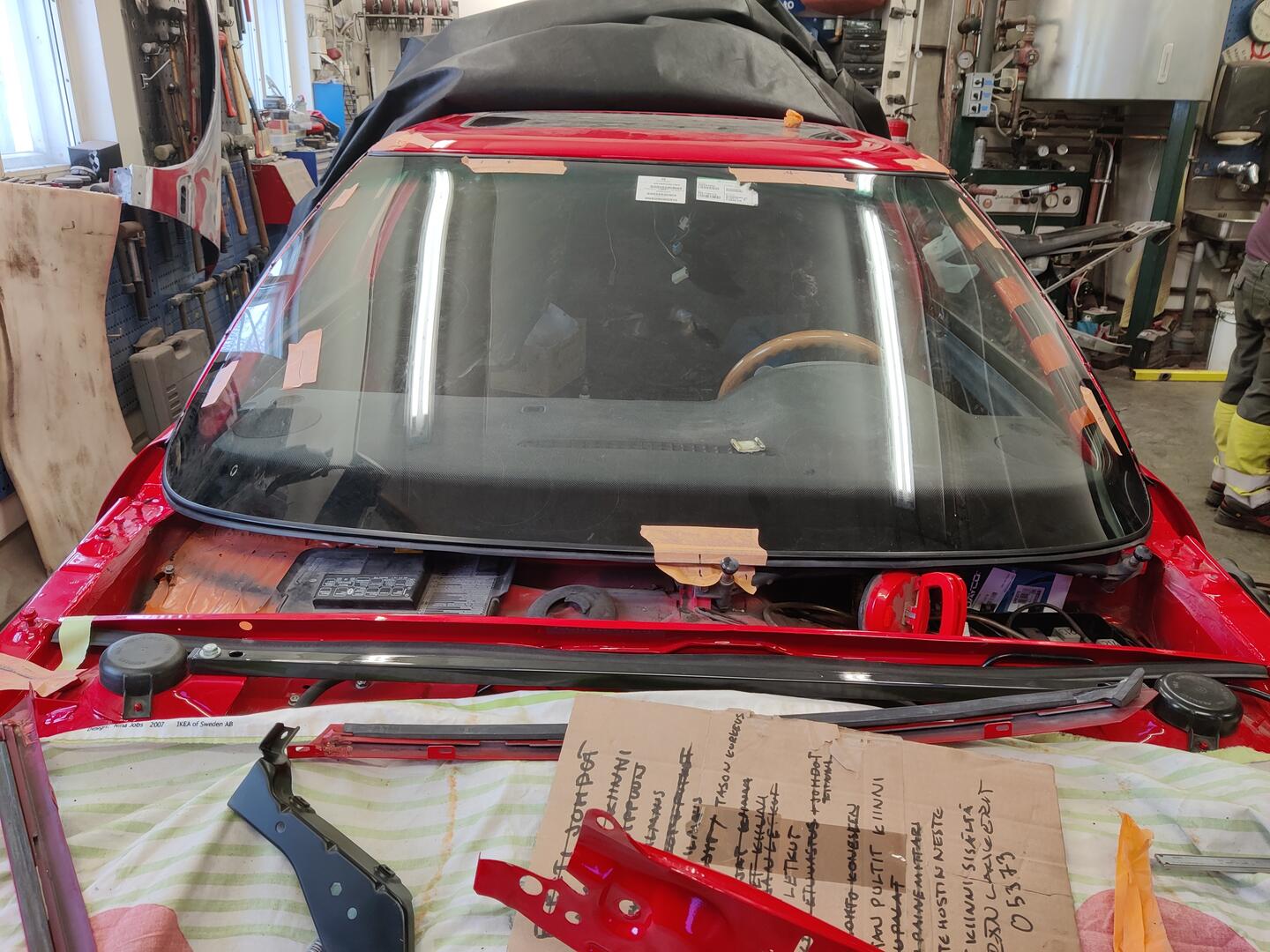 Auto talliin ja aloitettiin purkamaan. Ensimmmäisenä listalla oli korjata viat, joiden takia auto jäi seisomaan. Eli lämppärin kennon vaihto ja jälkiasennus varashälyttimen poisto.