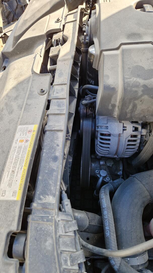 Ratkaisin vuotoasian vaihtamalla kopan ylemmän osan tiivisteet. Vesipumppuun tuli myös uudet tiivisteet ja samalla uusin kennolle ja oljyn lämmönvaihtimelle lähtevät putket. Jakopään suojakotelossa, öljytikun juuressa oli vähän korroosiota, joista rapsin pahimmat pois, sivelin fosforihapolla ja maalasin kevyesti yli. Moniurahihna kiristimineen vaihtui uuteen. Alumiineisessa hihnapyörässä ei näkynyt merkkejä kulumisesta, joten annoin sen olla. Kulessaan terottuu veitsiksi, jotka syövät hihnan nopeasti suikaleiksi.