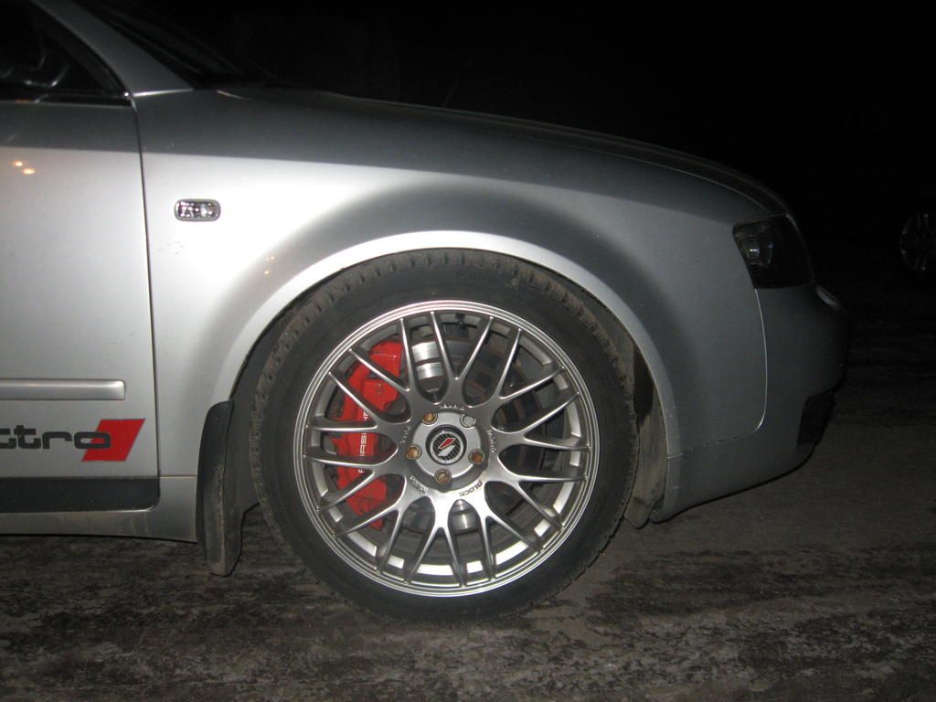 Levyt pysyi samana 345mm s4 b6 laikkoina kuin ennenkin, mutta satulat on nyt Q7, Porsche Cayenne ja Touaregistä tutut Brembon 6 mäntäiset. Nämä tuli Auto Carrerasta käytettynä suht edulliseen hintaan, kiitos Kim Nordströmille. Ovat siis Possusta peräisin. Hommahan 95% bolt b6 ja b5 korisiin. Satulan jako natsaa suoraan olka-akseliin. Possuissa yms levy on 350mm, eli pala jää hivenen periaatteessa yli. En ole tsekannut onko näin..Letkut tietty pitää teettää. Satula kiinnittyy läpipultilla. Pitääpä ottaa kuva kun seuraavan kerran pesasen auton.