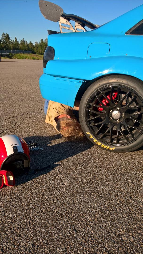 • Wavetrack, alupuslat paineensäädin yms asenneltu. Nyt autossa tuntuis taas olevan jarrut! Edessäkin. Huomenna olis tarkoitus viedä kulmien sätöön ja tiistaina botniaringille testaamaan. Melko hutera tuo takavetoisena kylmillä slickseillä oli kadulla ainakin. Radalla varmasti vetopitoa paremmin ja lämpösellä renkaalla. Pitää asentaa etuvetarit jos alkaa siltä tuntumaan.