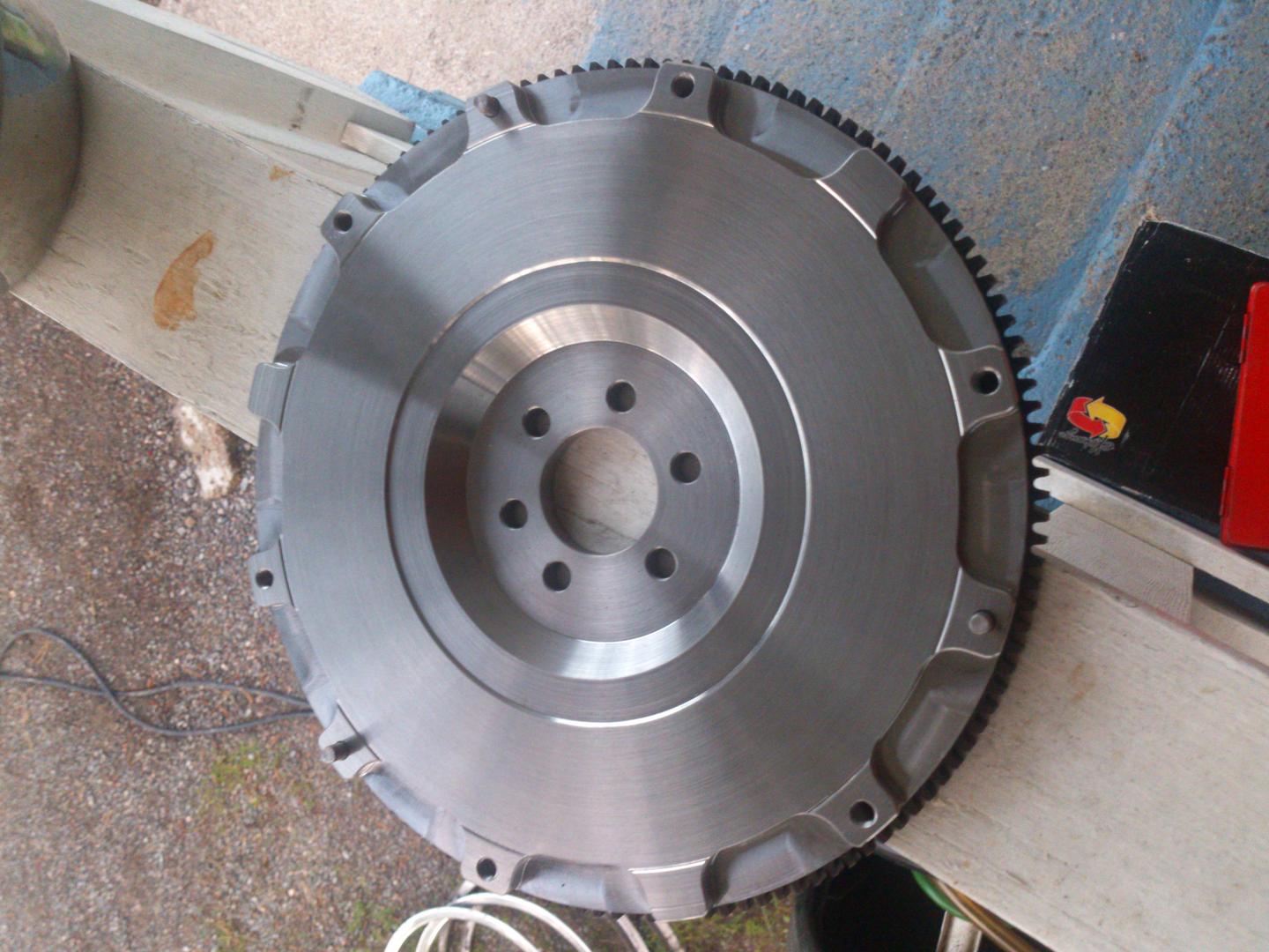 Uuden vauhtipyörän teetän PO-metallilla. Se pitäisi olla näinä päivinä valmis. Vanhasta kasikympin kiinteästä pyörästä ei paljon ole jatkokäyttöön. Ojennus soitteli että hyvällä tuurilla on ajeltu kun on aikamoinen halkeama kiinnityksen ja kitkapinnan välimaastossa. Voihan se olla että jos on 7500rpm ja semmoinen päättää sirpaloitua niin hajoaa muutakin kuin itse vauhtikiekko. :D