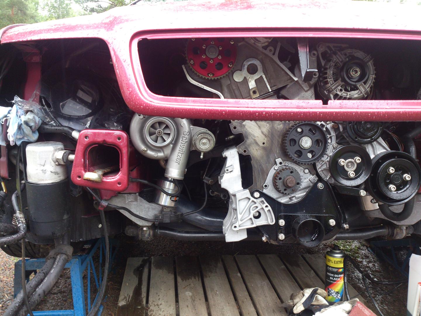 Ahdin on proturbon käsialaa. Schwitzer S2B kompurapuoli ja ProTurbon oma motorsport pakopesä. Ei ainakaan toista samanlaista ole maailmassa. :)