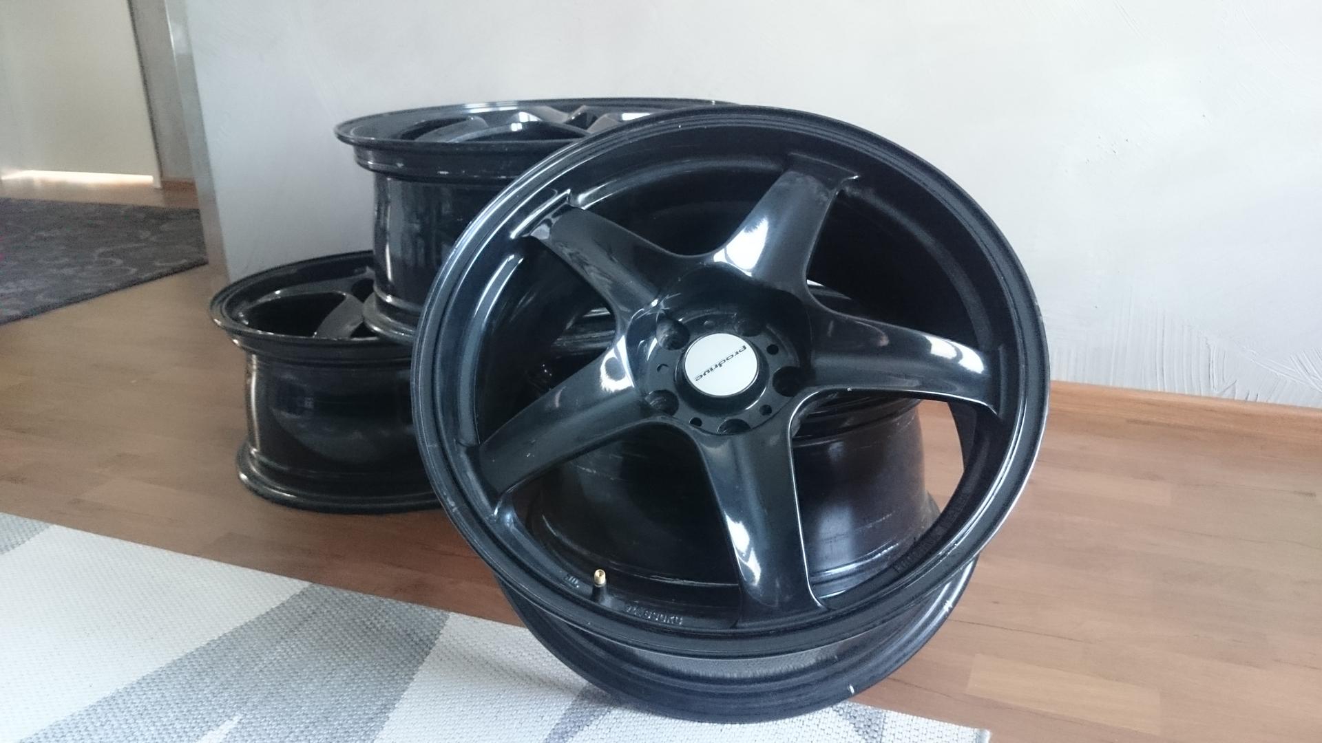 Vahingossa löytyi 8x18" Rays Prodrive forged vanteet melko edullisesti. Mennään nyt sit niillä seuraavaksi. Toki ei ihan olla alle 8kg mutta ei myöskään järjettömän paljon enemmin.