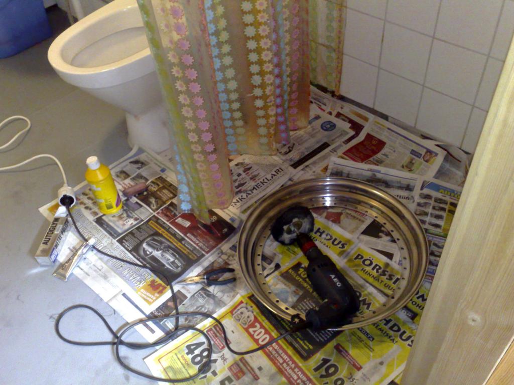 • Ei tämä projekti tunnukkaa enää niin mahdottomalta :D Reilu tunti, niin kehä näyttää tuolta. Sitä ennen käsitelty vaan nitro morsilla. 320-400-600-800 ja 1200 paperit + Kärkkäiseltä laikkasetti, jossa oli semmosia "mötiköitä" =) (joku varmaan osaa sanoa nimen), jota hierottiin laikkaan.