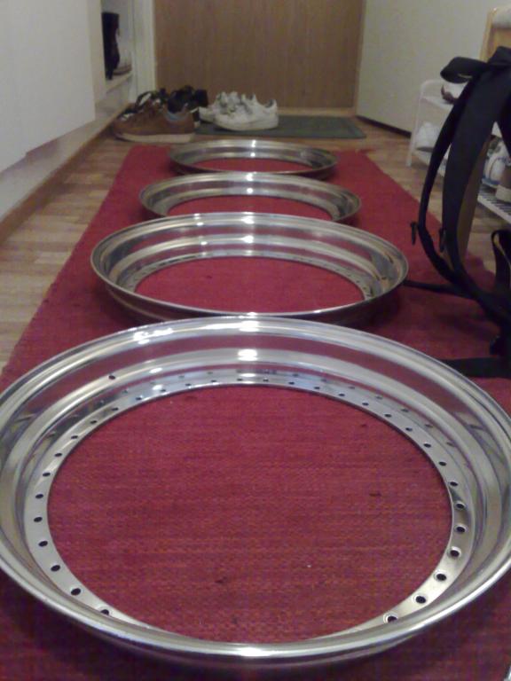Loppu käsittelyn tein tosiaan tuolla metal polishilla. Enää tarvii kasata vanteet ja varmaan kannattaa laittaa sikaflexiä tms. siihen vanteen ja kehän saumaan..? Ja renkaatkin ois hakusessa. (215/40, 225/35 tai 225/40/18)