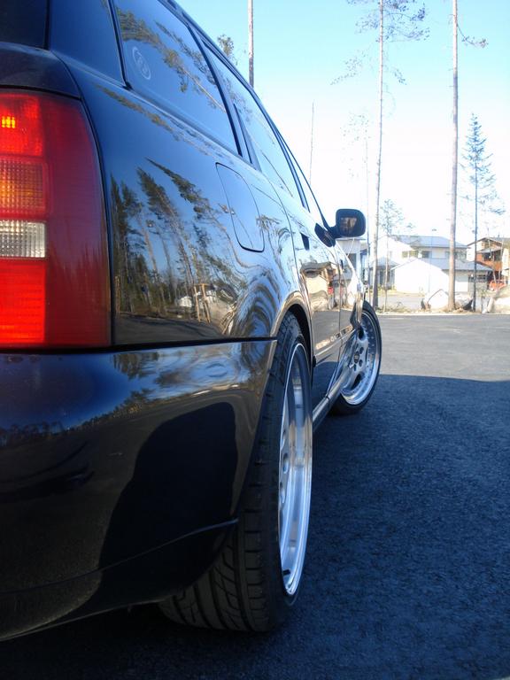 Kuva voi tosiaan pikkusen hämätä takarenkaiden ja etupuskurin suhteen, enkä halua vanteita yhtää enempää ulos kaarista. Sen cupra lipan vois laittaa keulille antamaan pikkusen lisäilmettä.