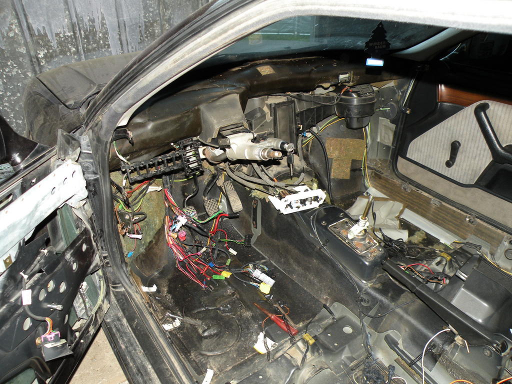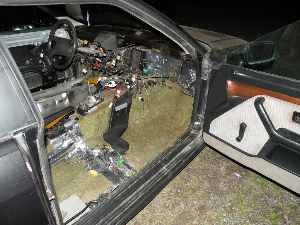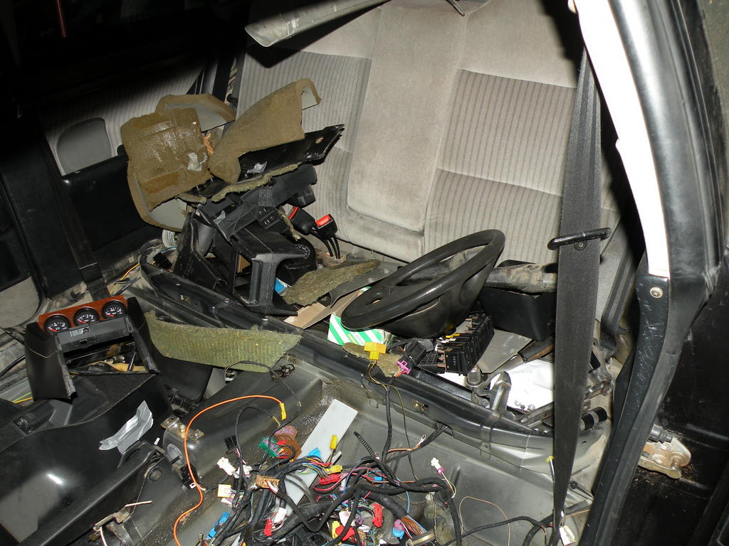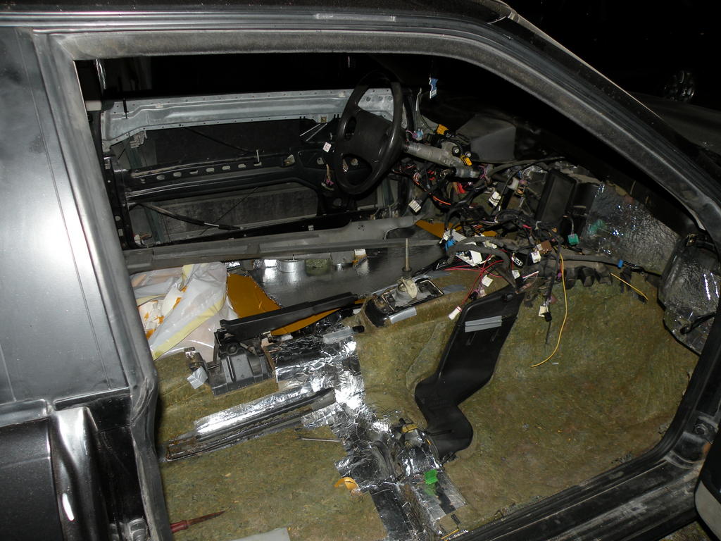 Autoa oli ostettaessa jo jonkin verran purettu, ja siitä puuttui tosiaan nuo yllä mainitsemani jutut eli ajovalo, kuskin penkki ja ohjauspylväs. Kuskin penkin selkänoja oli menny poikki ja edellinen omistaja oli ollut viisas ja poltti sen ja nyt pitäis jostain saada kuskin penkki. Eräs tuttu opiskelee verhoilijaksi ja täten olisi mainio tilaisuus verhoilututtaa kaikki penkit. Pitääs vaan ensin keksiä miten tuon takapenkin selkänojan saa irti -.-" . Ohjauspylvään ja ajovalon tarinaa en tiedä, mutta ajovalo löytyin peräluukusta ja siinä oli linssi rikki.