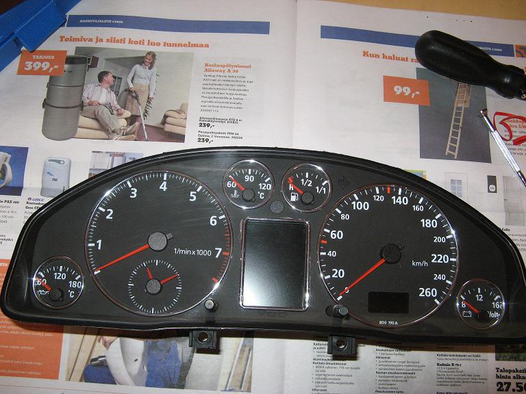 Helppo homma oli ottaa mittaristo pöydälle ja laittaa, meni noin tunti siinä hommassa. Ajotietokoneen kehys vähä meni huonosti mut kelpaa mulle.