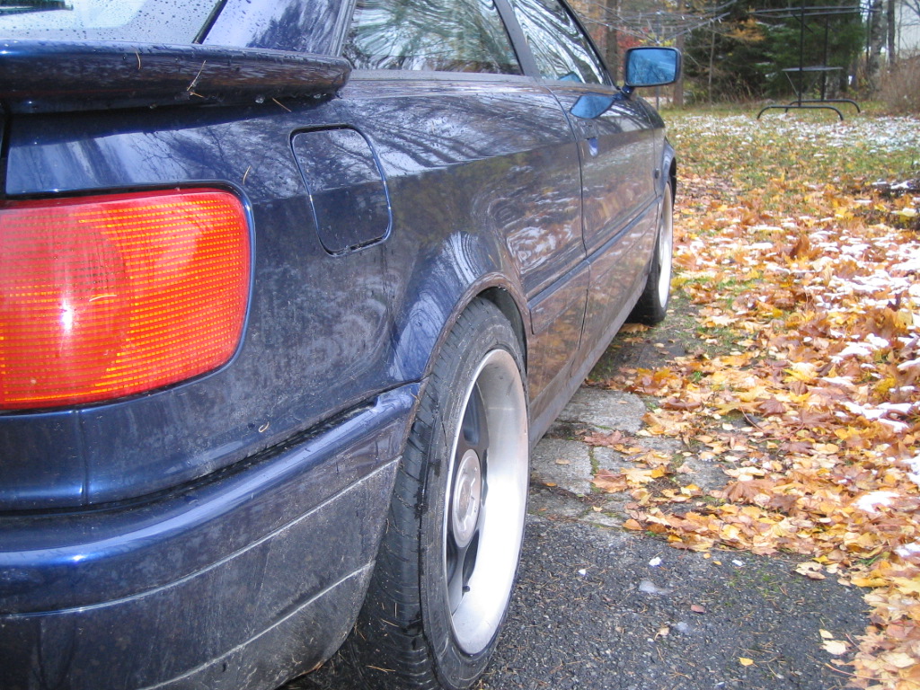 No vastaillaan tänne nyt sitten. Eipä minulla oo ollu ku kahenlaista rengastusta tossa, 195/60/R15 15x7 et38 vanteella, sekä 215/45/R17 17x7 et38 vanteella. Rohkeemminkin ne sieltä saisi ulos tulla. Kyllähän tonne pitäs 16x9 et15 205-kumeksella mahtua ilman muokkailuja, sellaset ois kesäksi kiikarissa. Takanahan kyllä piisaa tilaa.