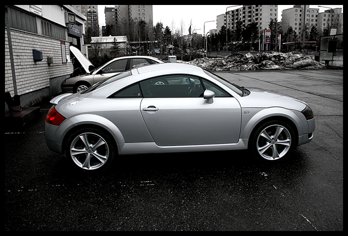 Lyhyesti: Ostin TT:n maaliskuussa 2009 autoliikkeestä. TT:ni on tuontiauto ja myyntiliike on tuonut sen ulkomailta alkuvuodesta 2009. Auto vaikutti hyvin pidetyltä, eikä mittarissakaan ollut liikaa kilometrejä, joten toteutin varsin pitkäikäisen haaveeni ja ostin Audi TT:n. Muistan vielä elävästi, kun armeijassa poikien kanssa katselimme autolehdestä, että kylläpä Audilta on tulossa upean näköinen uutuus markkinoille. Siitä asti olen TT:stä haaveillut. Mahtavalta tuntui saada avaimet käteen ja kaasuttaa liikkeestä baanalle.