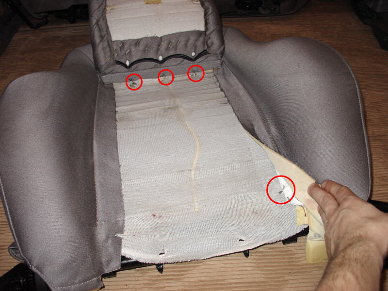 10) Kankaan sivut nostamalla urasta pois, niissä on nuo ikävät hakaset (3kpl/puoli) joilla repii helposti sen pintamateriaalin pilalle