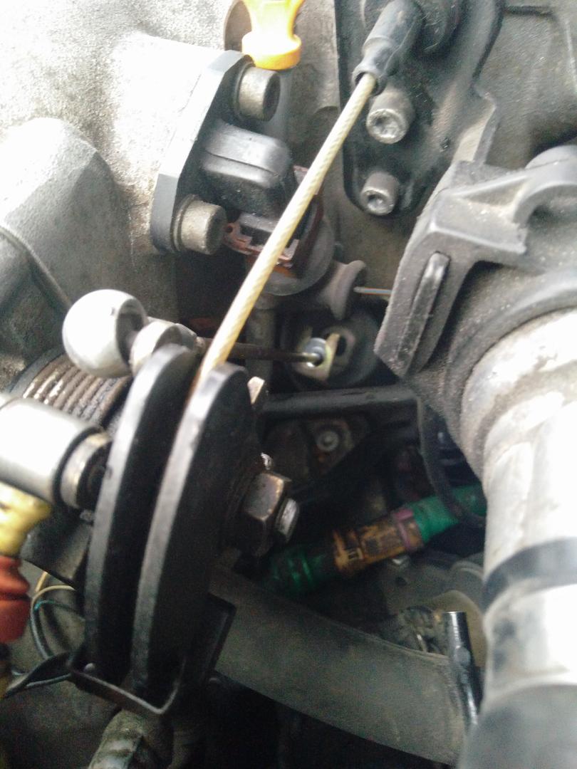 Nyt kun olen sahannut tuota Kehä 3:sta (joka on muuten melko heikossa kunnossa, kauheat urat) niin nyt aamulla vakkari sanoi sopimuksen irti. Yhtäkkiä "irroitti" ja ei mennyt päälle ollenkaan. Mietin loppumatkan mahdollisia syitä käytökseen ja työpaikalla riitti vain konepellin aukaisu ja kurkkaus sinne alipainekellon puolelle. Siitä tangosta oli hävinnyt kokonaan se pusla joka pitää sitä tankoa paikoillaan, osanumero 811907423. Pari kuvaa selvennykseksi. Tanko siis on irrallaan. Tuo olikin aika rapeahkon oloinen ja ei tosiaan kestänyt käyttöä. Toivottavasti noita vielä saa uusia.
