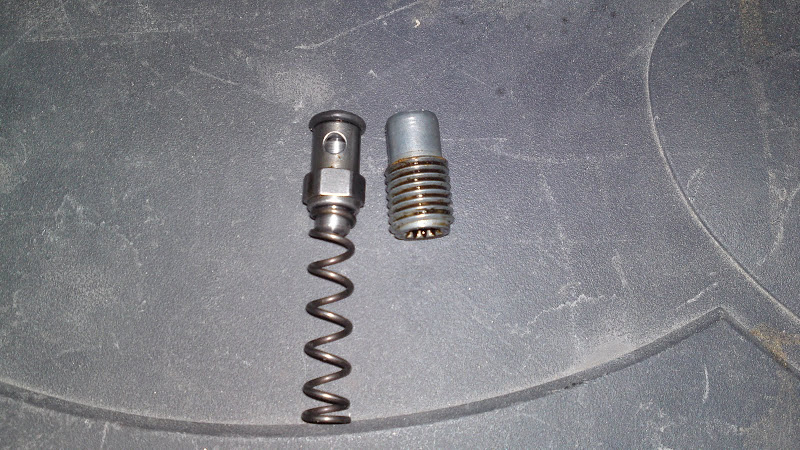 Kävin Marmorilla tilaamassa tuon takaiskuventtiilin ja oli tulleet myös nuo vakkarin holkit. Tallista ulos ajaessa huomasin, että pari tippaa punaista jäähdytinnestettä lattialla. Pakkohan sitä oli heti ihmetellä mistä se tulee ja eipä sitä tarvinnut kauaa hakea. Se on tuo alipainesäädin joka sulkee kuumavesikierron, kuvasta näkee kuinka se vuotaa tuosta kohtaa missä ohjuritappi on (värjäytynyt punaiseksi). Kai tuo on saanut sen verran liikuntaa säiden lämmettyä, että on alkanut vanha tiiviste sisällä falskata.