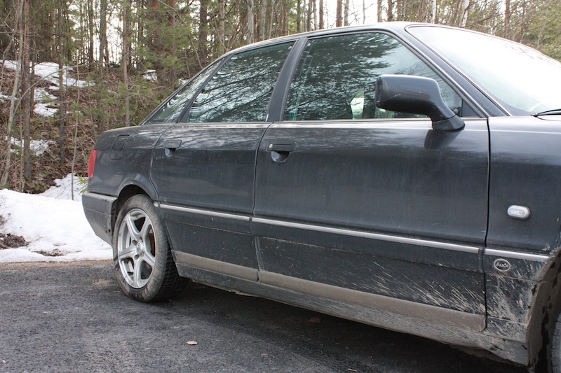 Tuli vaihdettua pirssi huomattavasti edullisempaan ja vanhempaan. Oikeastaan tämä on vanhin auto minkä olen omistanut. Kyseinen yksilö ei ollut ulkopinnaltaan parhaimmassa mahdollisessa kunnossa ja äänentoistosta vastasi fiat/mitsubishi logoilla varustetut ämyrit ja vanha soitin. Kahden päivän uurastuksen jälkeen auton ulkonäkö muuttui hieman. Tänään pajalta pois ajettaessa sain useita pään kääntymisiä aikaan :)