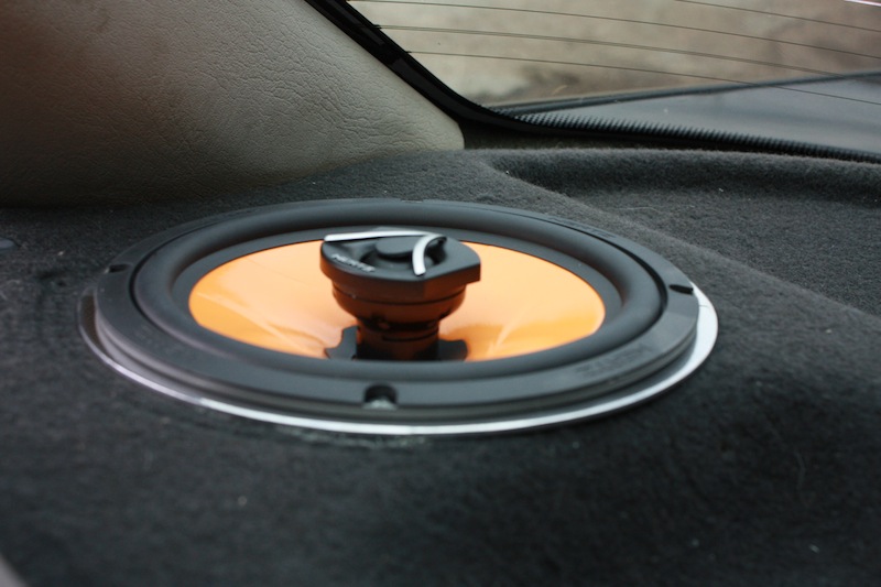 - Etukaiuttimiksi ECX100.4 ja alle sorvasin 6mm alumiinista upotuskehykset ja kiillotin.